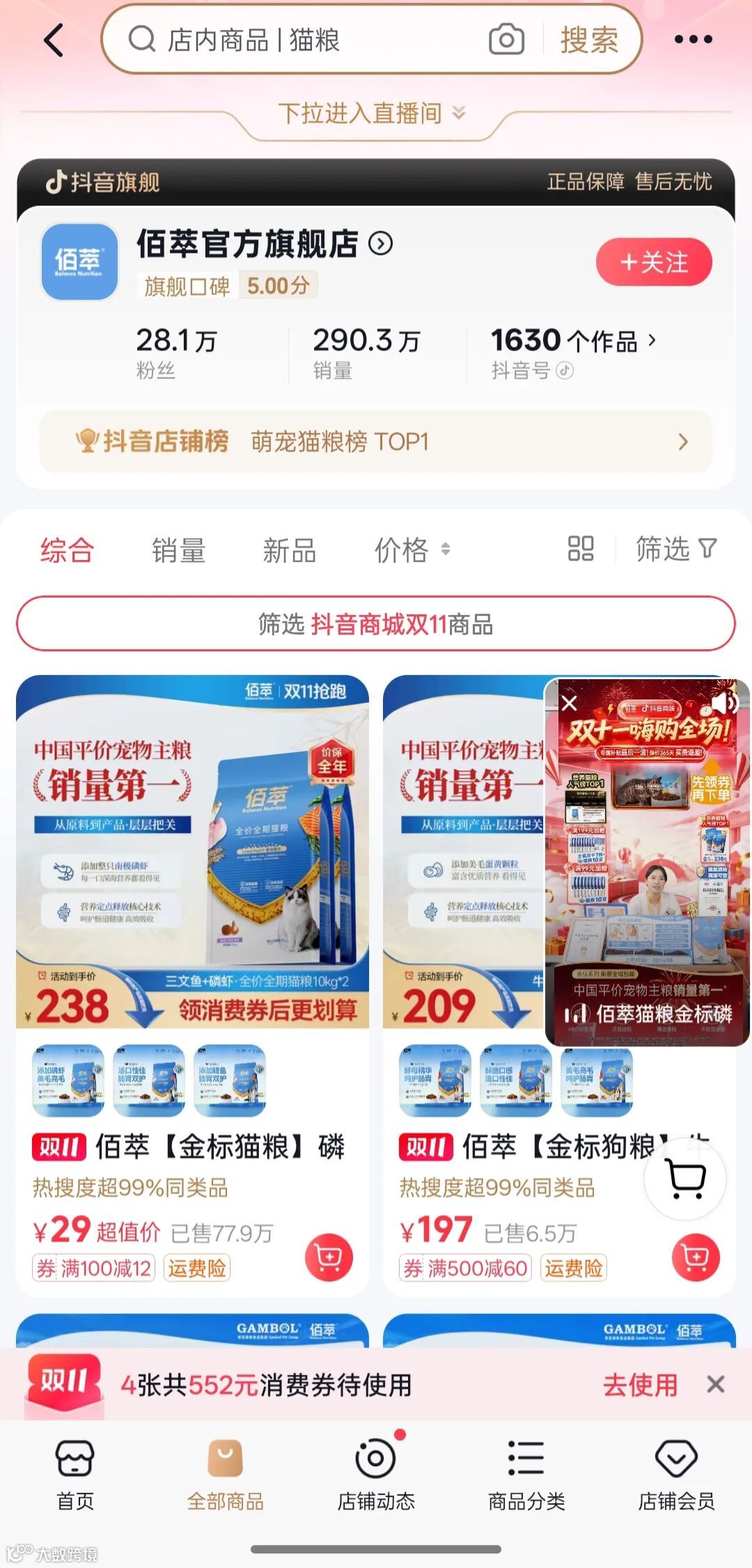 直至2024年2月末,乖宝宠物才宣布佰萃将独立运作,正式开启品牌化、渠道化发展战略。独立之后,佰萃迅速迎来爆发式增长。截止发稿,在天猫官方旗舰店,其主打产品累计销量已突破10万件;在抖音渠道,佰萃旗舰店累计销量更是超过290万件,成为平价宠粮细分市场中的代表品牌之一。