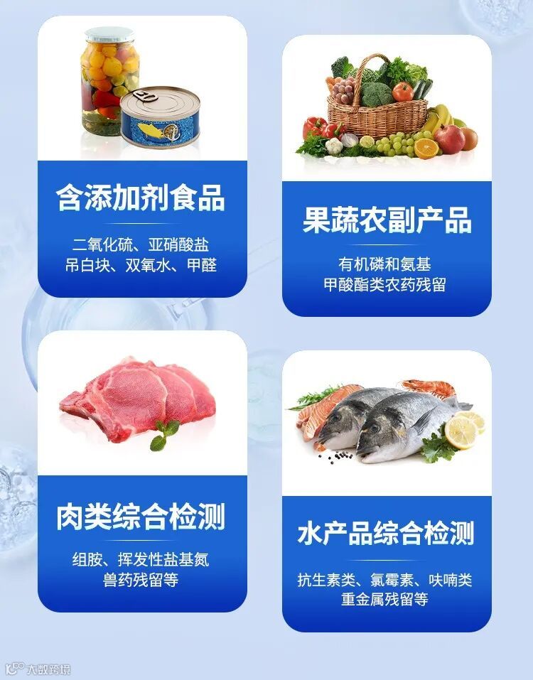 1. 食用添加剂:预制食品中可能发生的食用添加剂是否满足法律法规及规范。食品安全检查仪可用于检测食品中是否有违法添加物或食用添加剂超标。