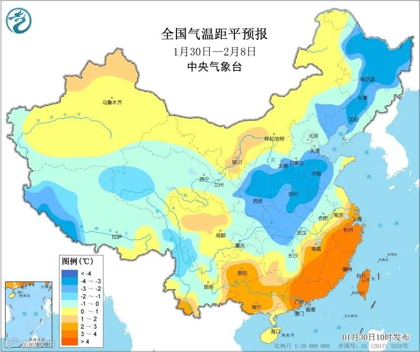 未来10天,青藏高原、西北地区东南部、东北、黄淮、江汉、江南西北部等地平均气温较常年同期偏低1~3℃,江南中东部、华南大部平均气温较常年同期偏高2~4℃,我国其余大部地区气温基本接近常年。