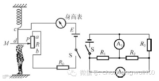 1.如左下图所示是小明设计的一个简易电子身高测量仪的原理图.以下说法中正确的是( ).