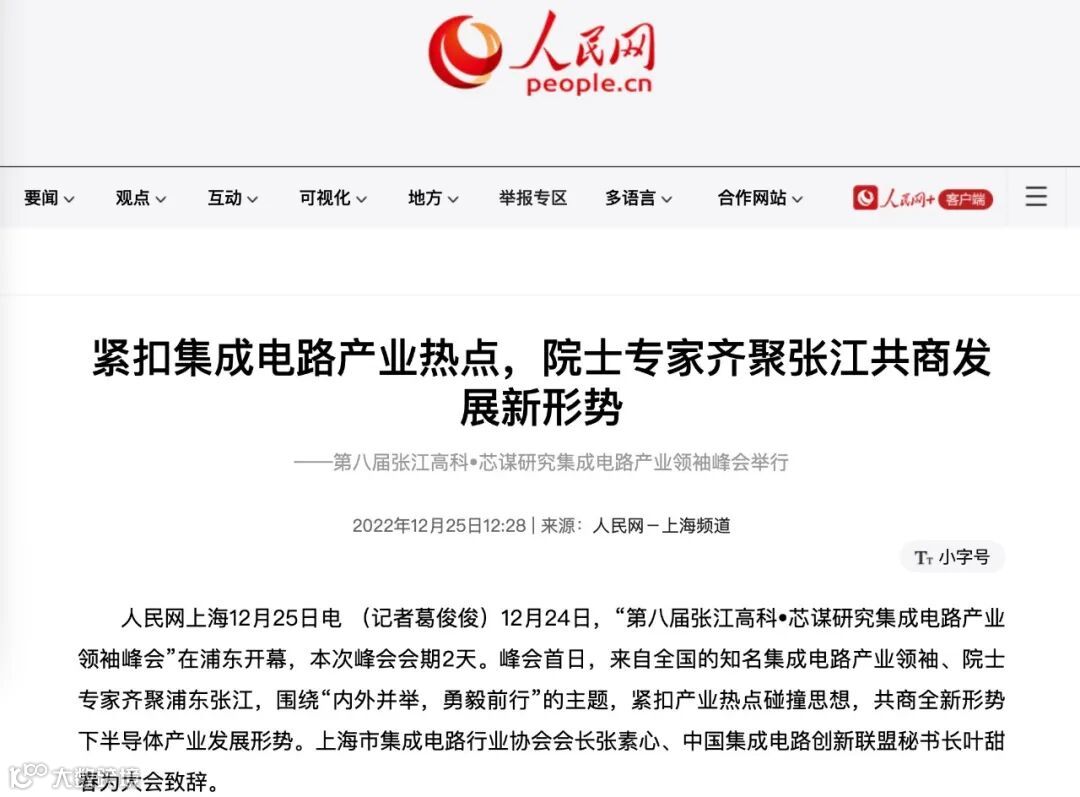 媒体报道|人民网:紧扣集成电路产业热点,院士专家齐聚张江共商发展新形势