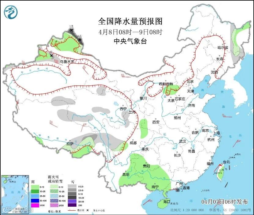 在降水方面,预计未来三天,南方降水较弱,新疆北部、青藏高原东部、内蒙古东部、黑龙江、吉林等地多雨雪天气,其中8-9日,新疆北部高海拔地区、西藏东北部等地有大雪或暴雪。
