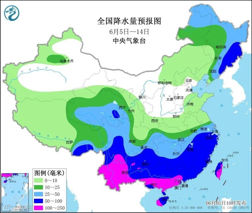未来10天(6月5-14日),江南大部、华南及四川西部、贵州、云南等地累计降水量有40~70毫米,其中四川南部、贵州西部、云南西部和南部、华南南部等地的部分地区有90~150毫米,局地200毫米以上;东北地区西北部和南部、青海东南部、西藏东南部等地累计降水量有30~60毫米。与常年同期相比,云南大部、四川南部等地累计降水量偏多3~8成,局部偏多1倍左右。