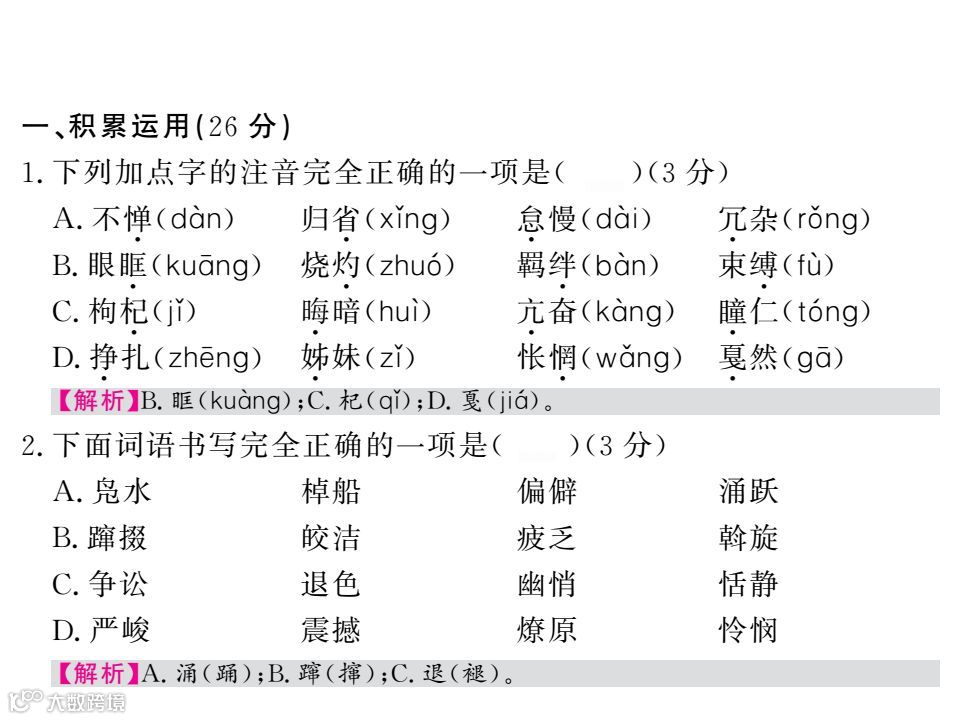 2017-2018学年人教部编版八年级语文下册第一单元综合测试卷