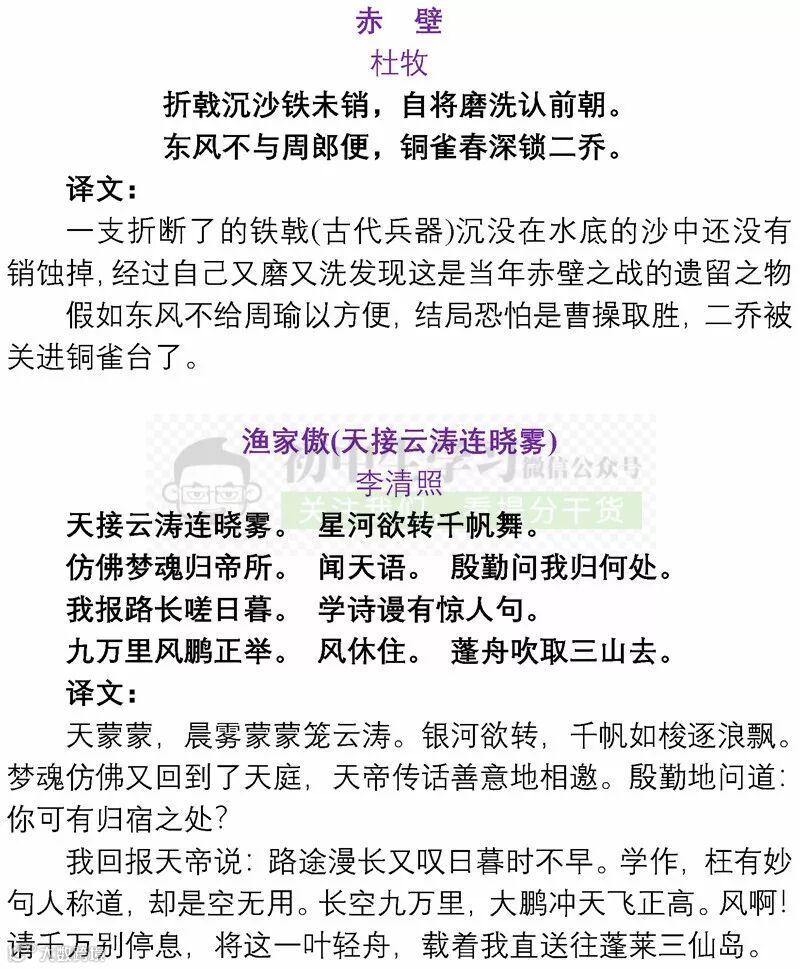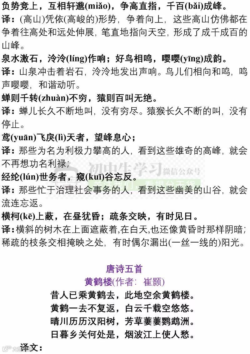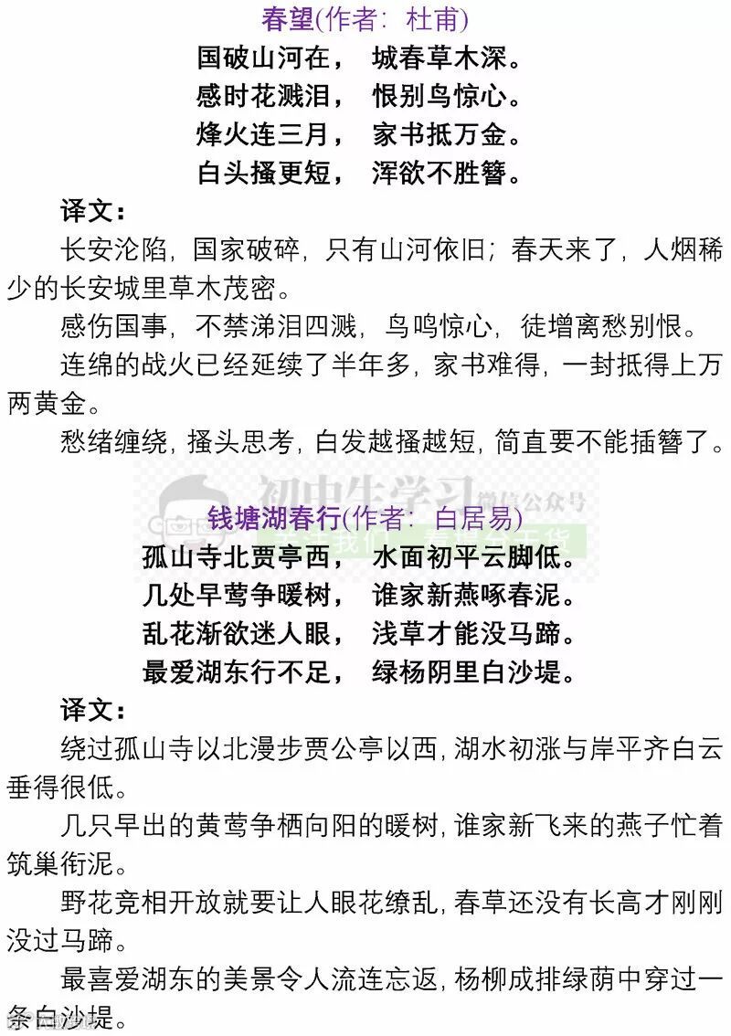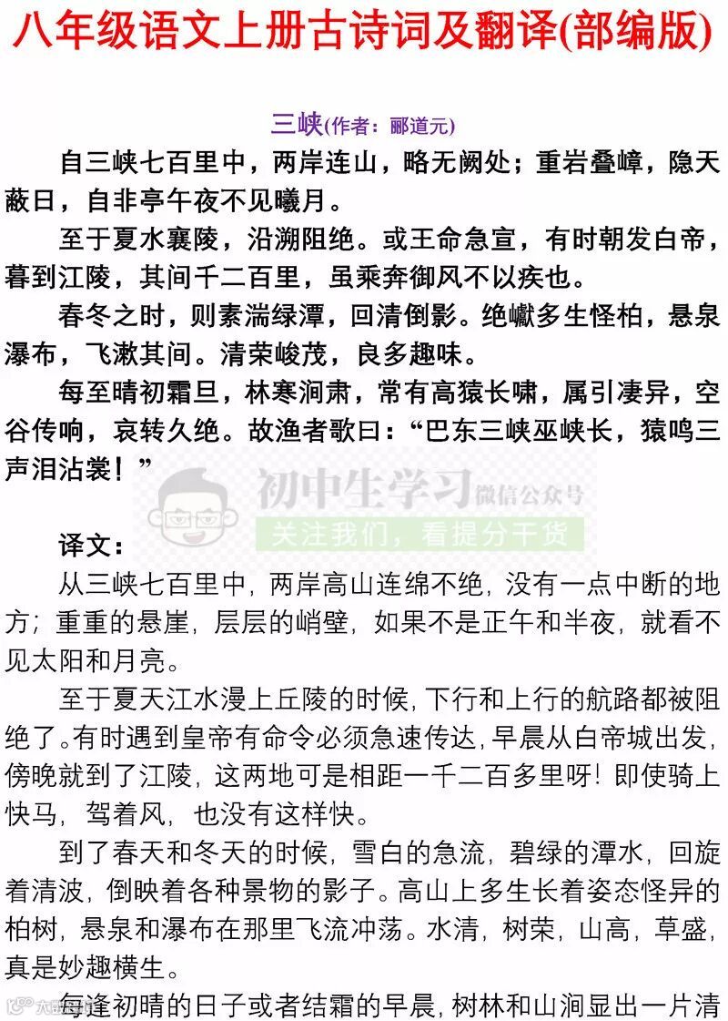 八年级上册必背古诗文汇总,暑假赶紧背起来!附翻译