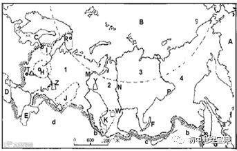 2.阅读俄罗斯简图(在下图中指出下列地理事物):