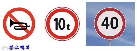 限制速度(路段内,机动车行驶速度不得超过标志所示数值。以图为例:限制行驶时速不得超过40公里)。