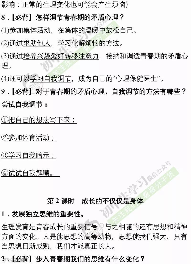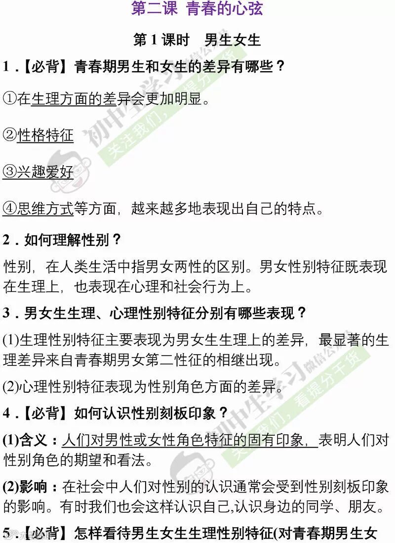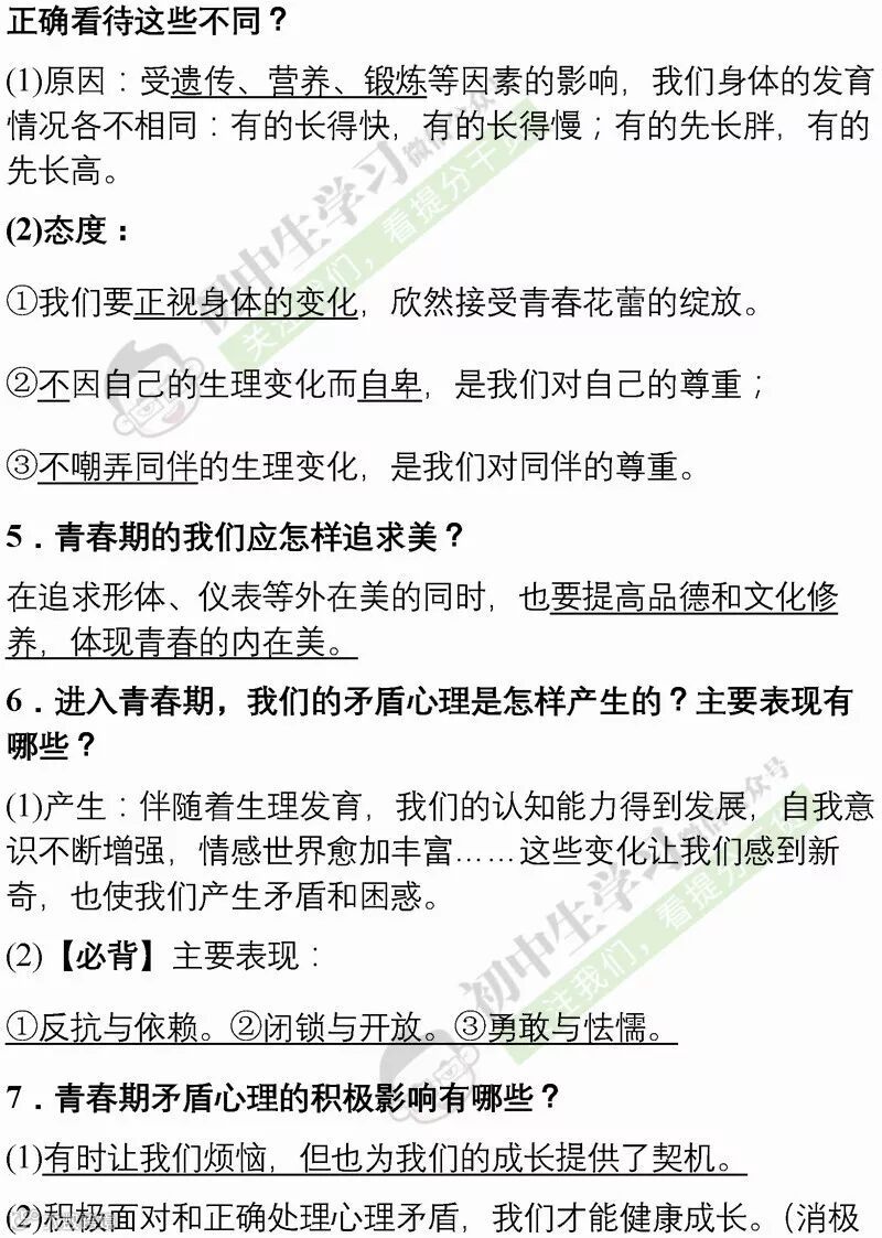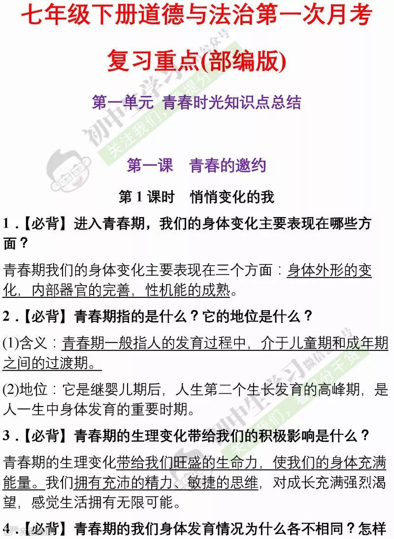 七年级道德与法治下册第一次月考重点知识清单,月考抢分必看!
