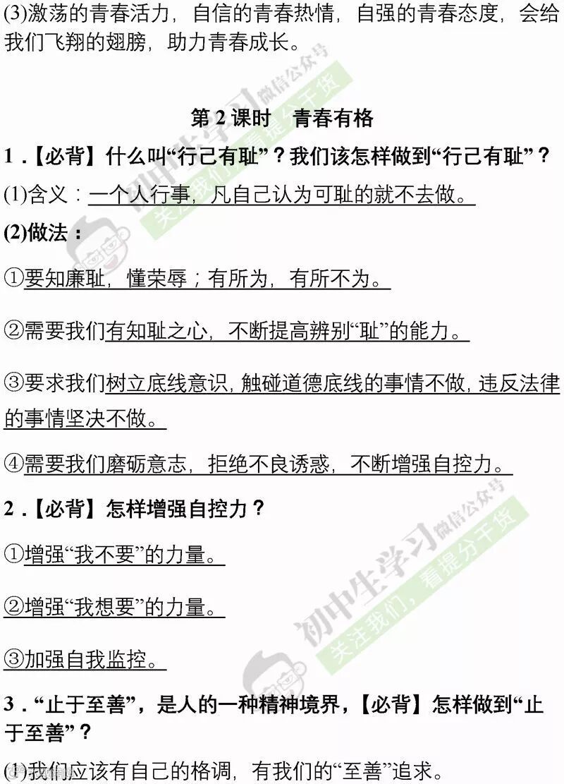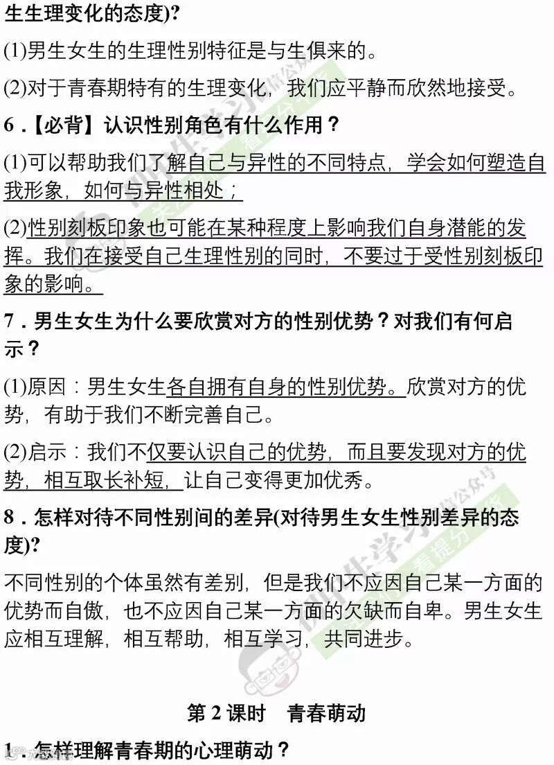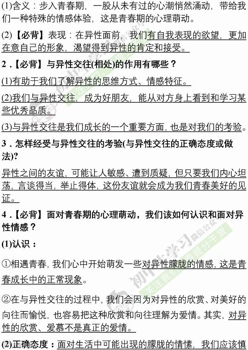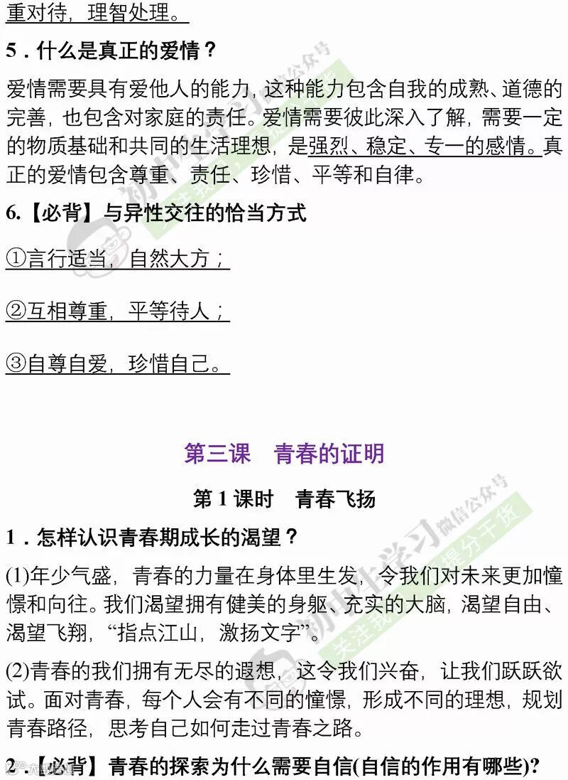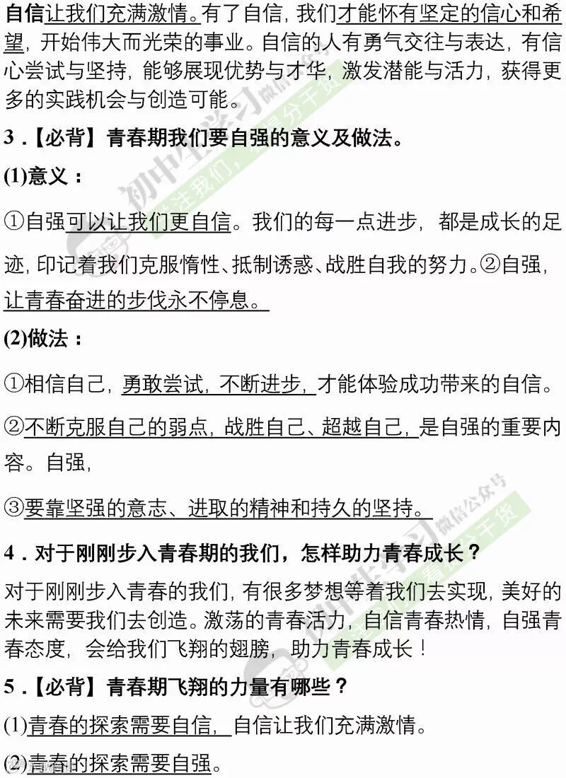 七年级道德与法治下册第一次月考重点知识清单,月考抢分必看!