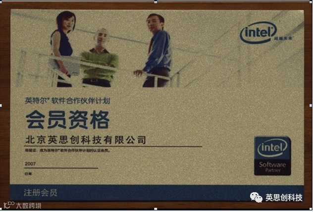 通过与Intel公司长时间的合作,公司的综合实力得到Intel的肯定, 2007年年中公司成为Intel软件领域的认证合作伙伴,自此公司将与Intel公司展开更紧密合作,共同开拓中国的IT市场。
