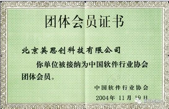 公司于2004年11月19日被中国软件行业协会吸纳为正式会员,即肯定了公司在软件领域的实力,也标致着公司将能更多的依托中国软件协会的支持,获得更多的发展资源和机会,更好的获取高端的软件技术,更快的带动企业技术和业务的发展。