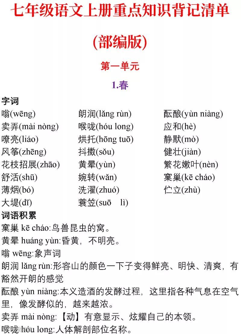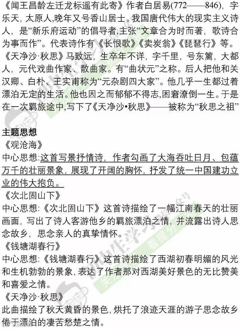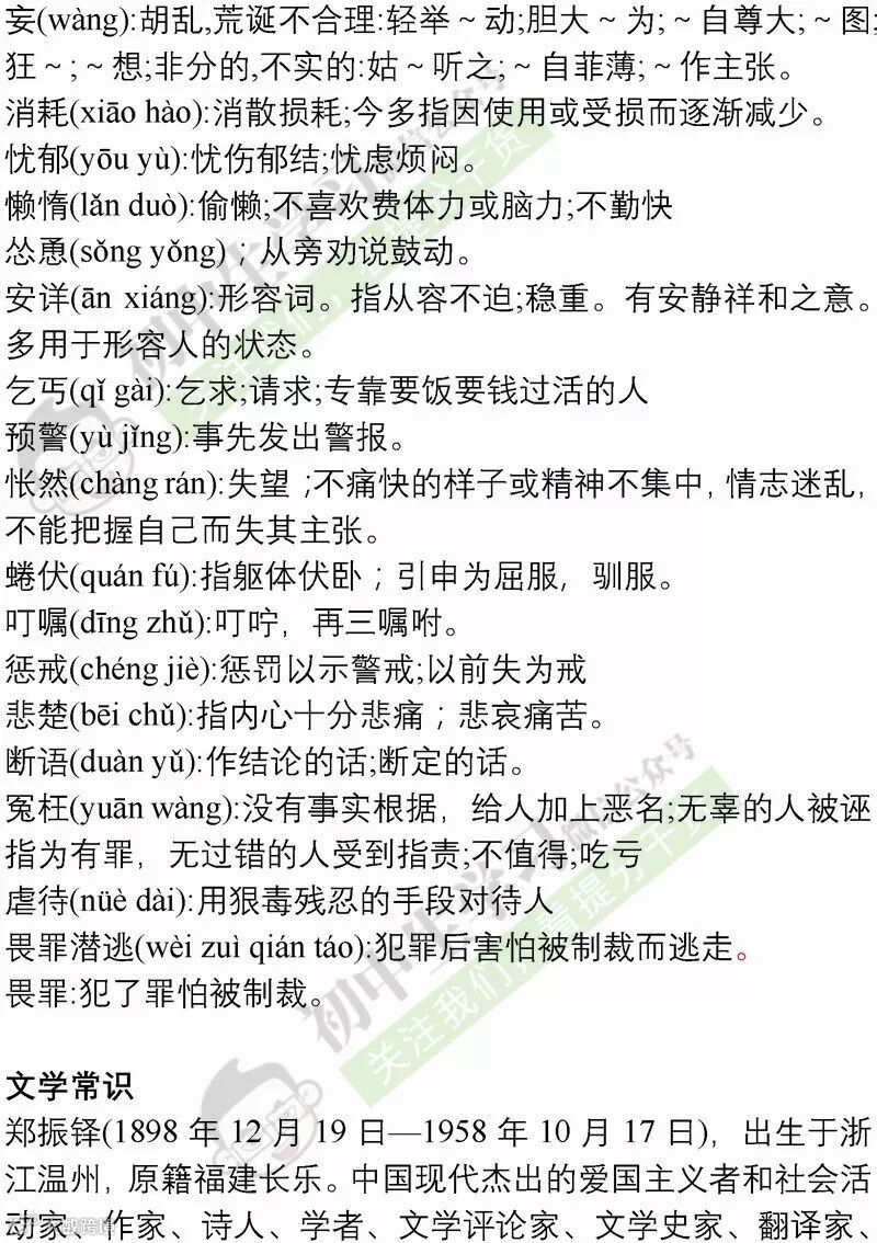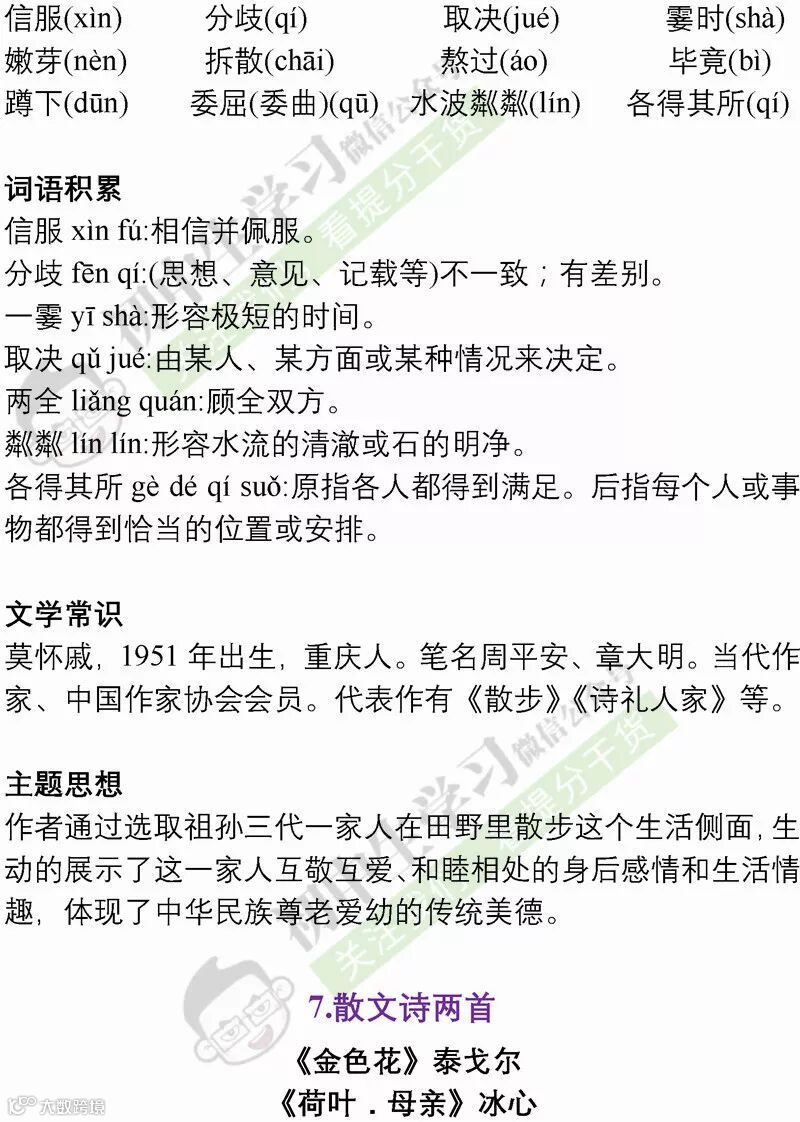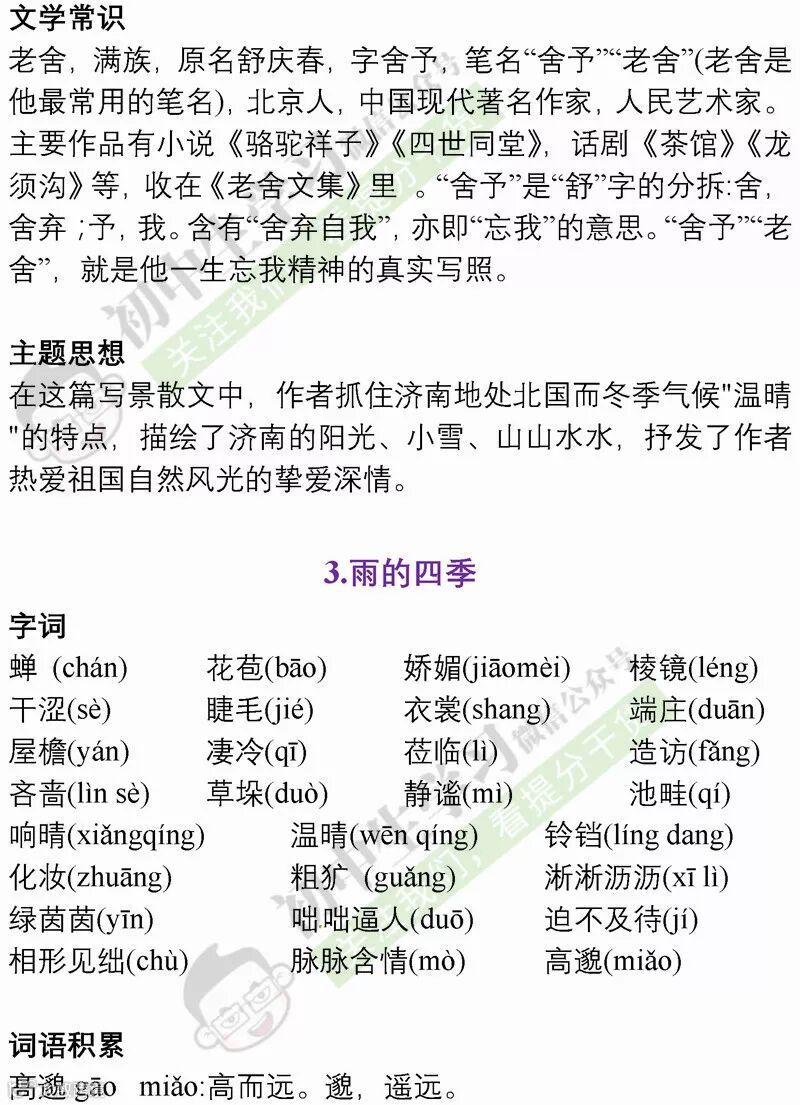 七年级语文(部编)上学期期末考试必备复习提纲! 附名校期末卷