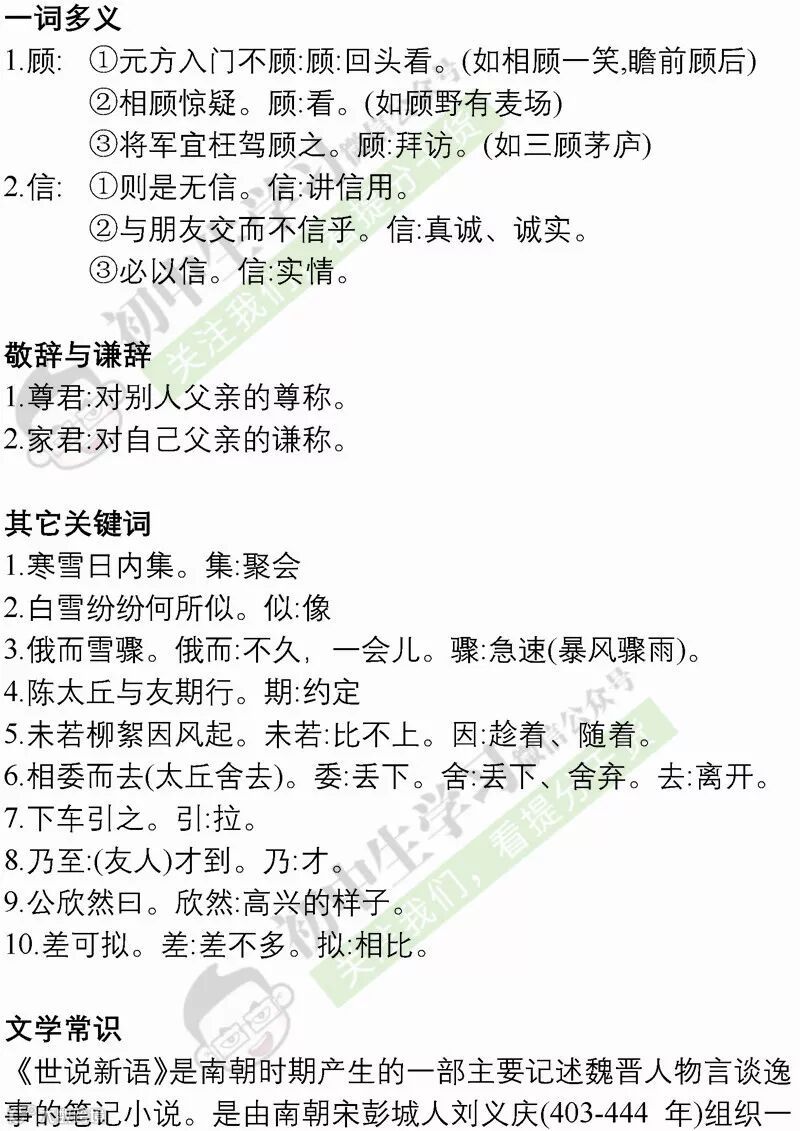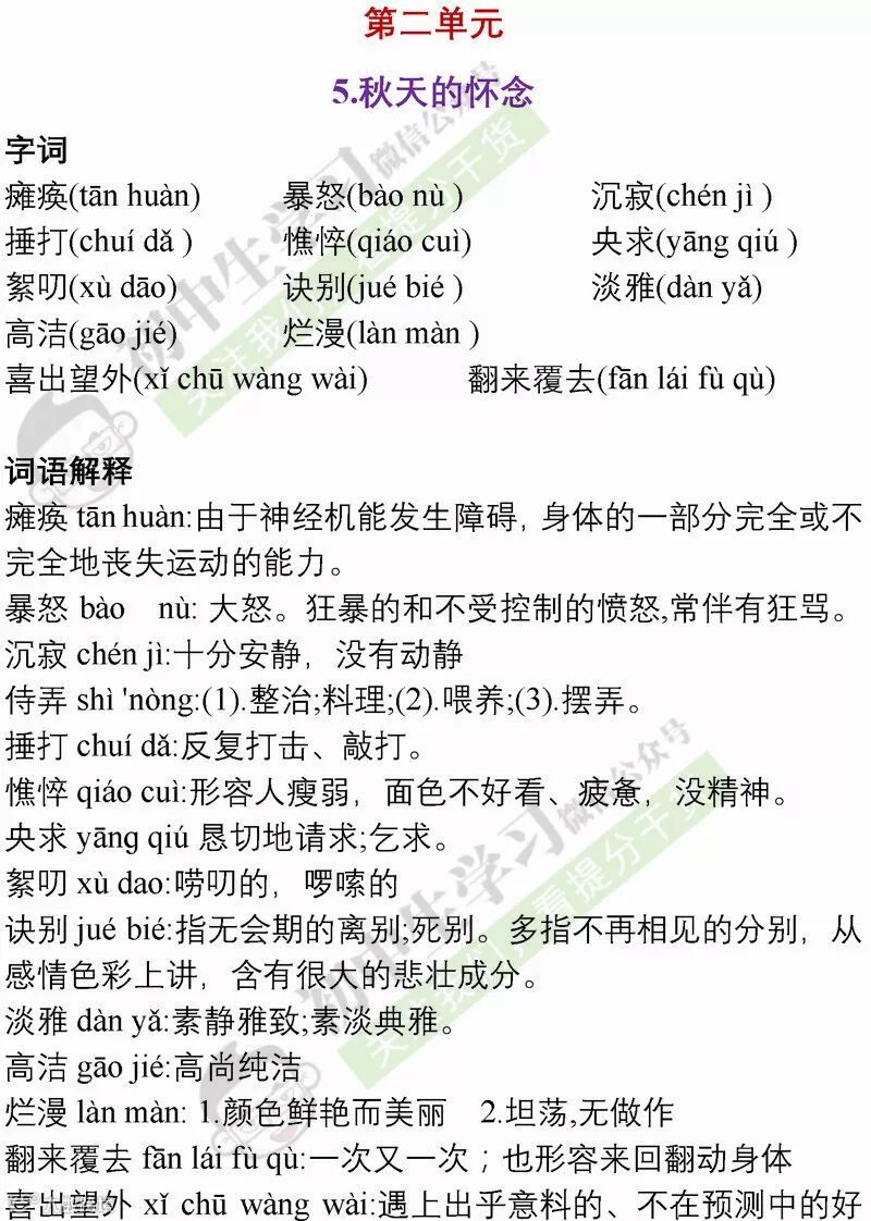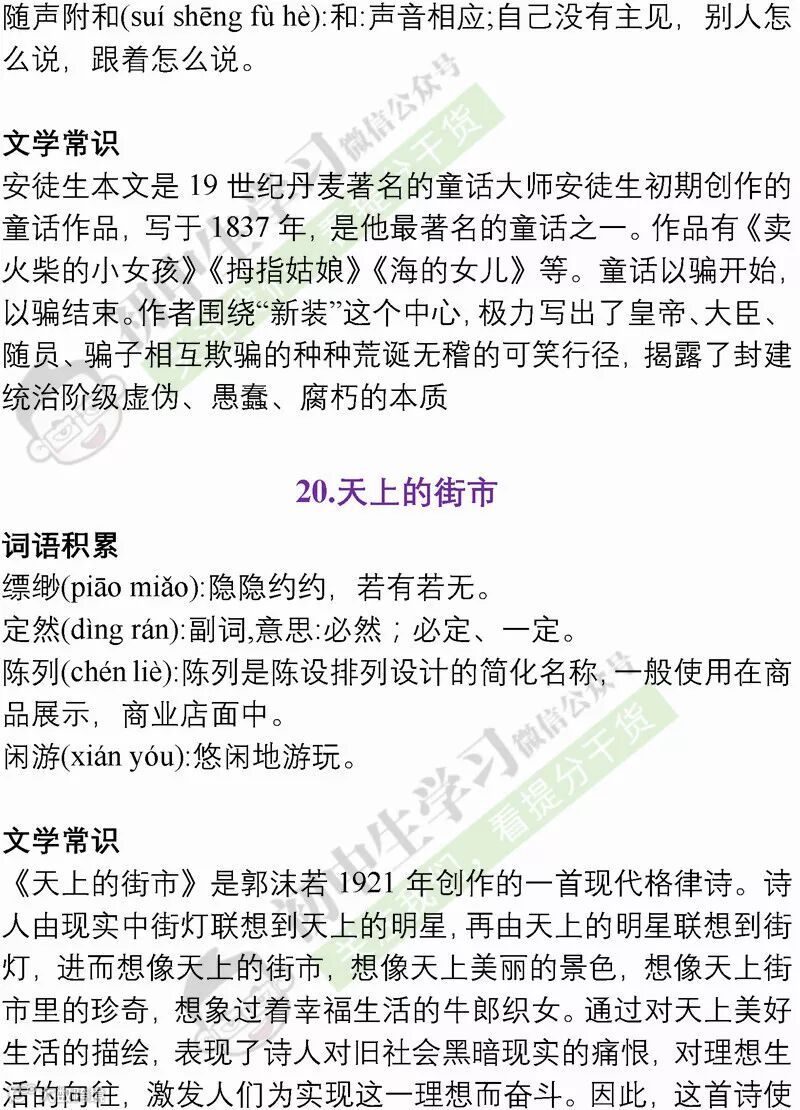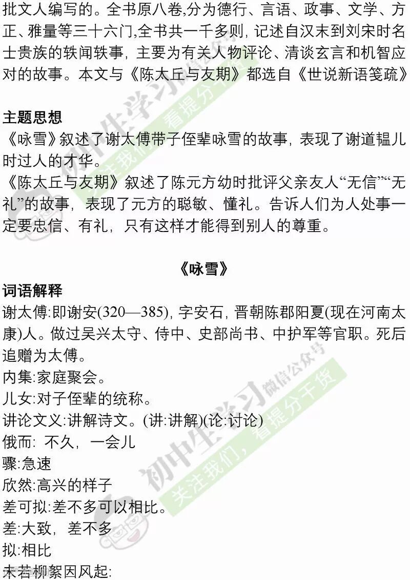 七年级语文(部编)上学期期末考试必备复习提纲! 附名校期末卷