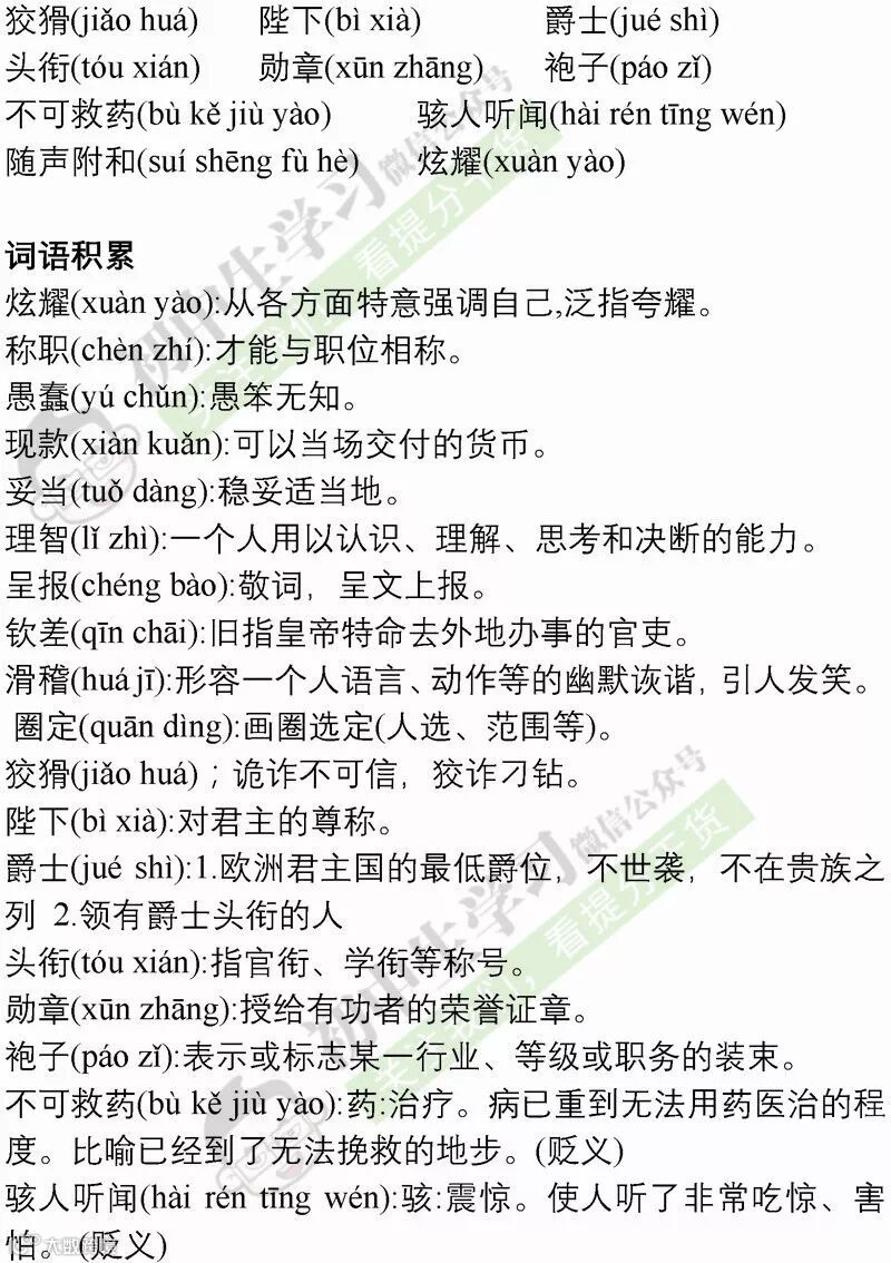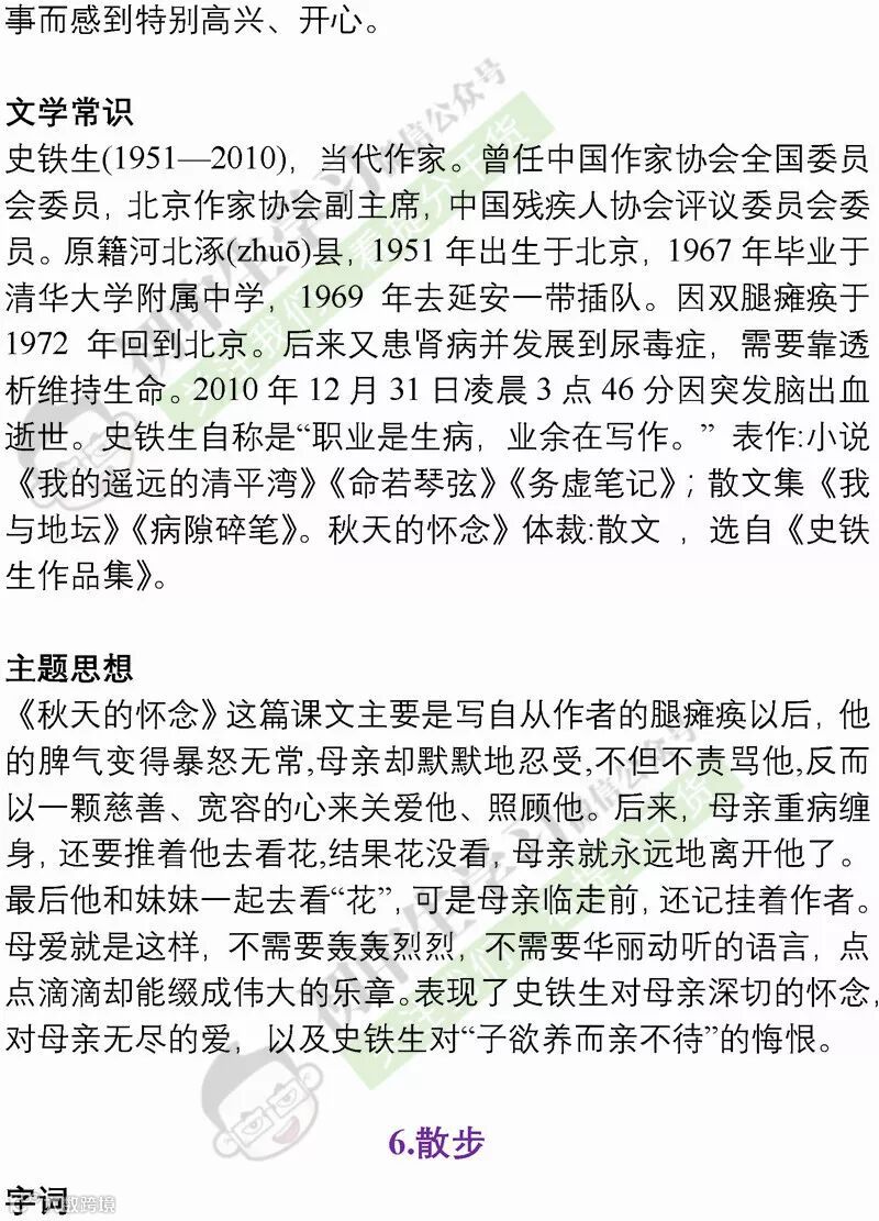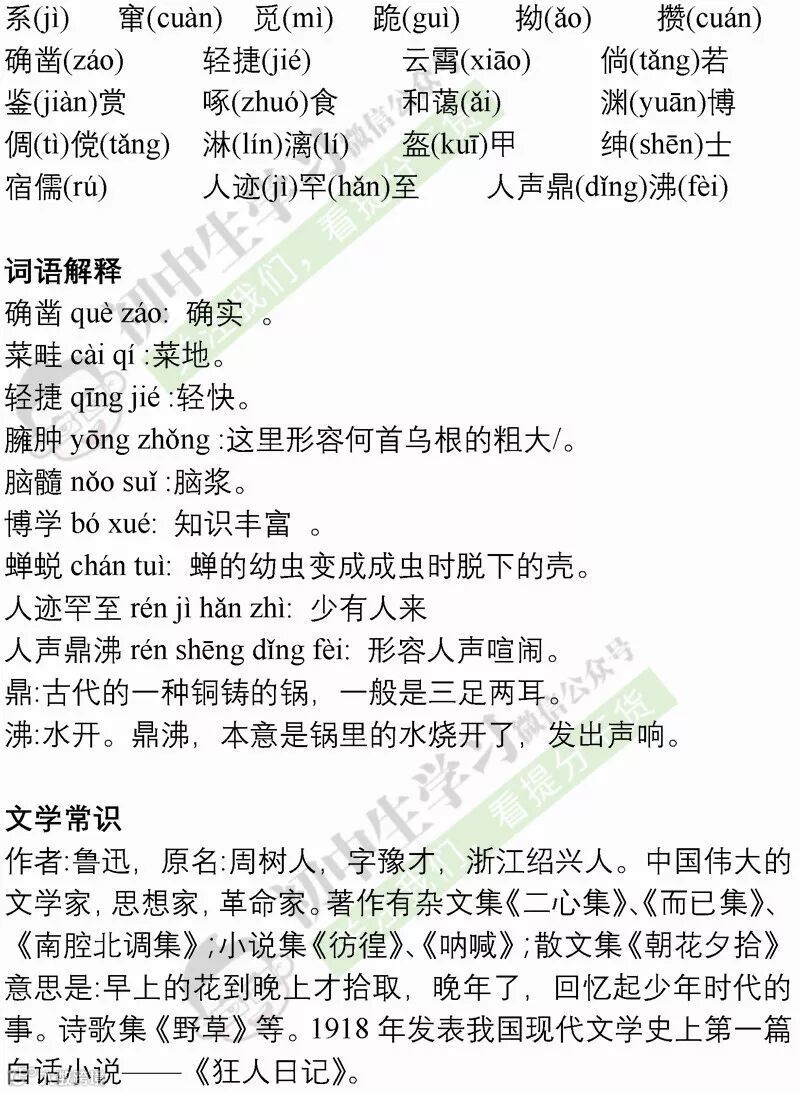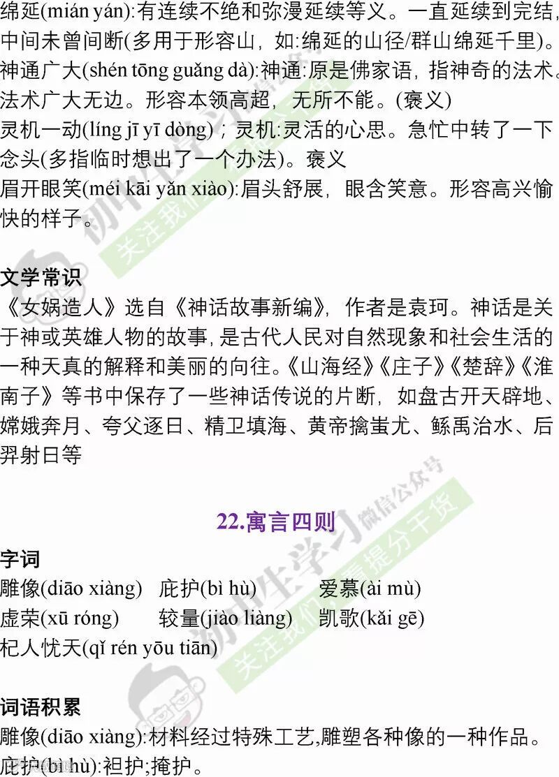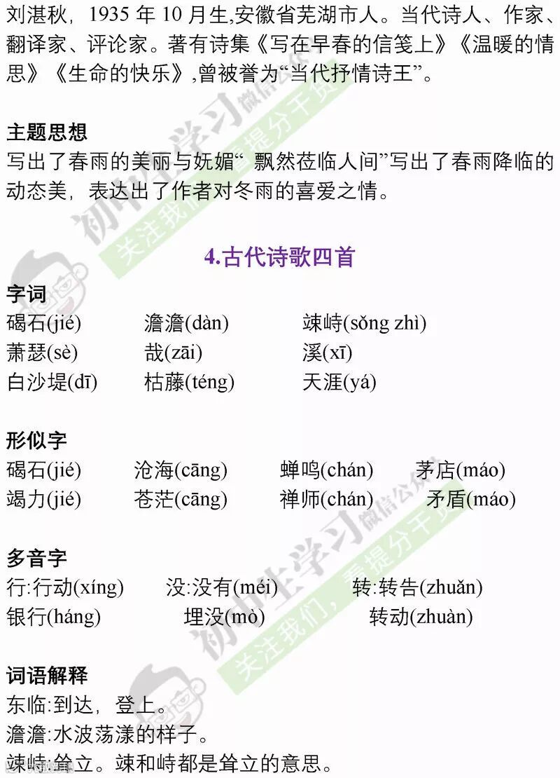 七年级语文(部编)上学期期末考试必备复习提纲! 附名校期末卷