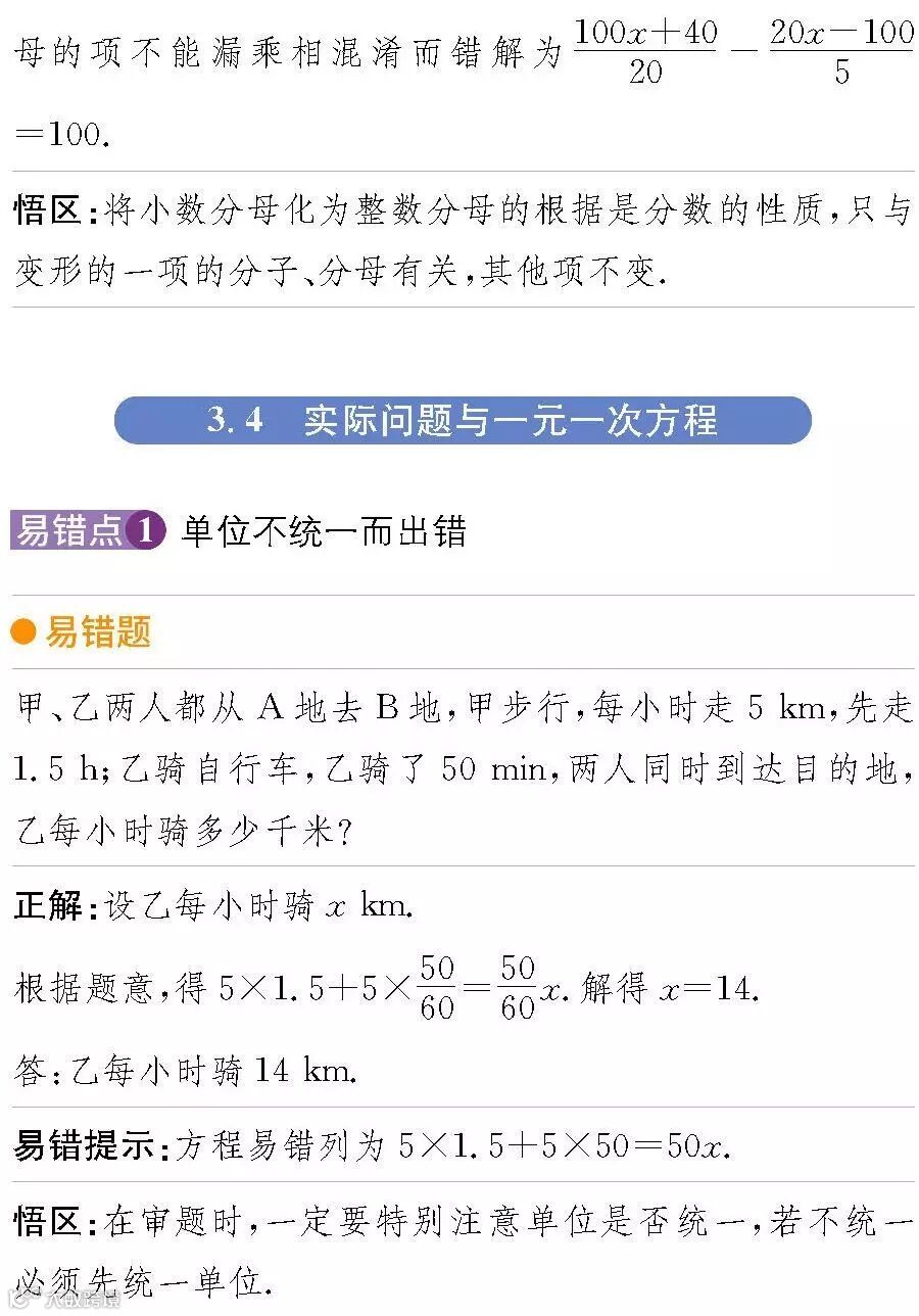 七年级数学往年期末考易错点全汇总! 附名校期末卷/下册教材