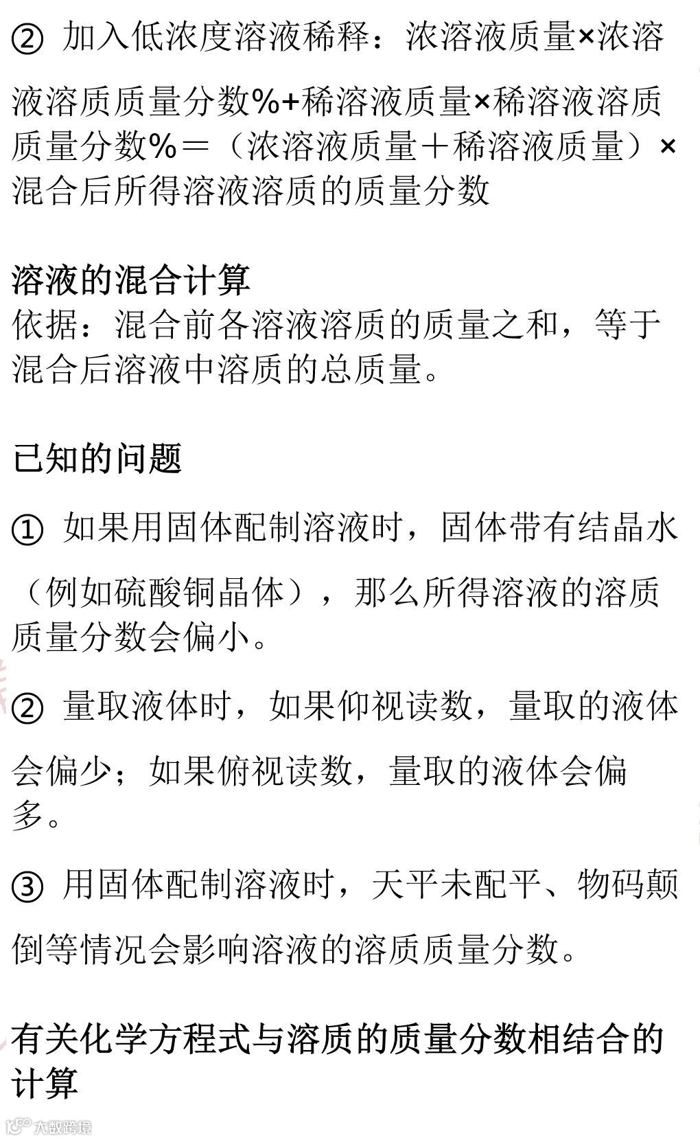 今天豆姐给大家整理的是初三化学下册的溶液部分的知识点,重点内容是溶液的性质、溶解度以及质量分数的计算,有哪一部分还不清楚的就赶快看看吧!