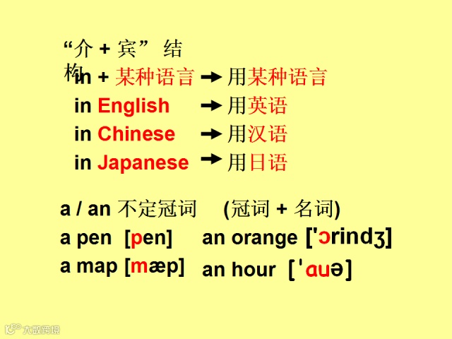 冠词a和an是一种虚词,只用在单数可数名词前,表示“一”的意思。a用在以辅音音素开头的单词之前,an用在以元音音素开头的单词之前。这里的元音音素和辅音音素是指读音,而不是指字母。