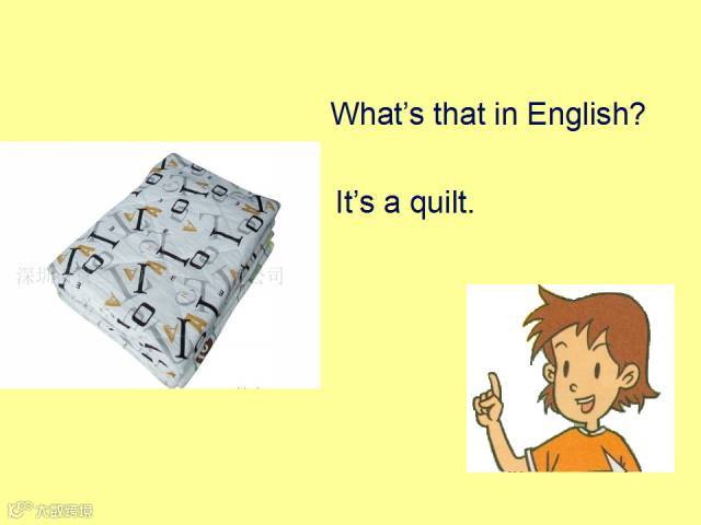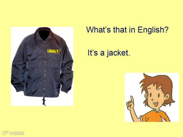 例如: — What’s this in English? 这个用英语怎么说? — It’s a jacket. 它是一件夹克衫。 — What’s that in English?