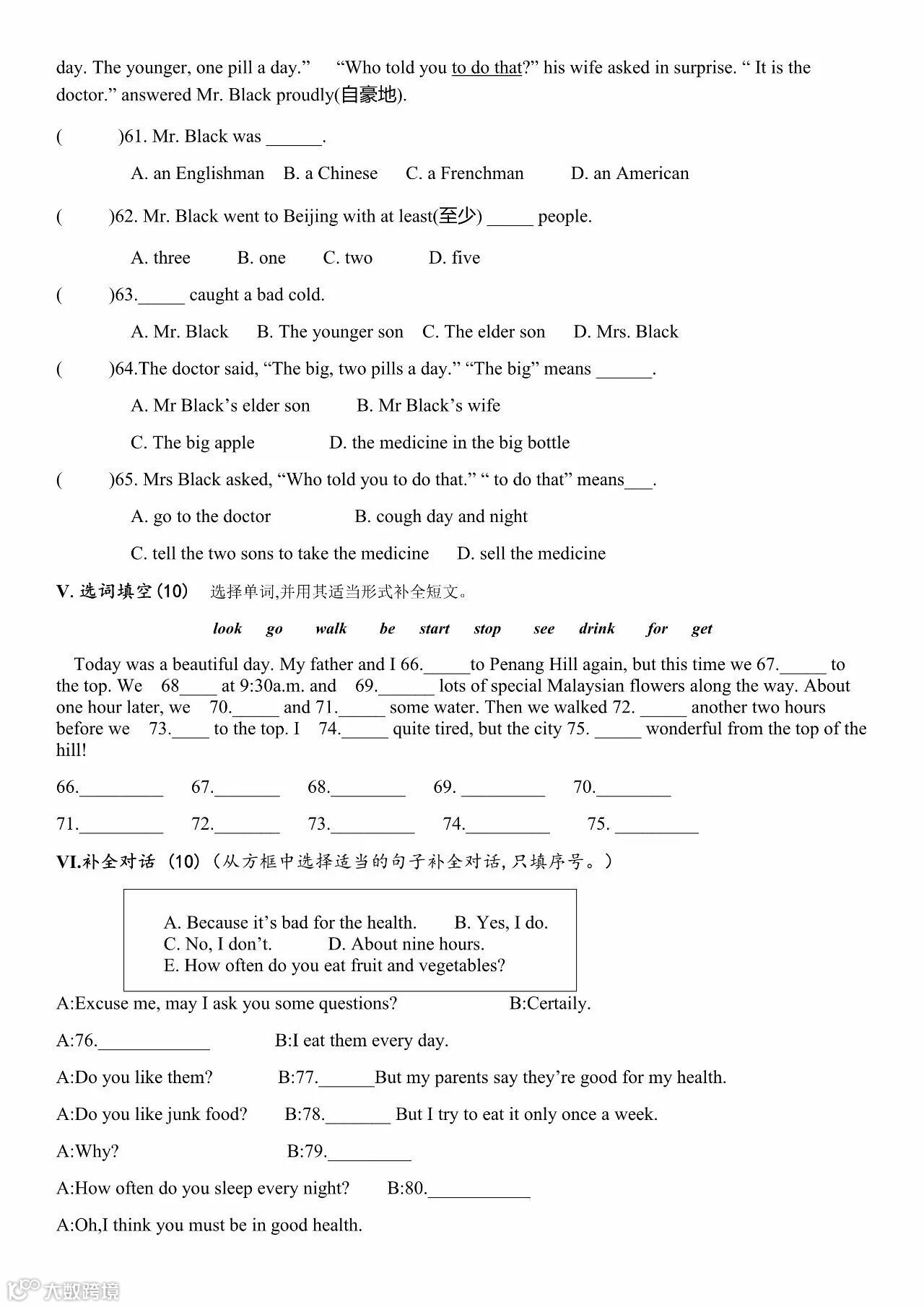 后台回复1007可下载打印完整版(含答案和解析)