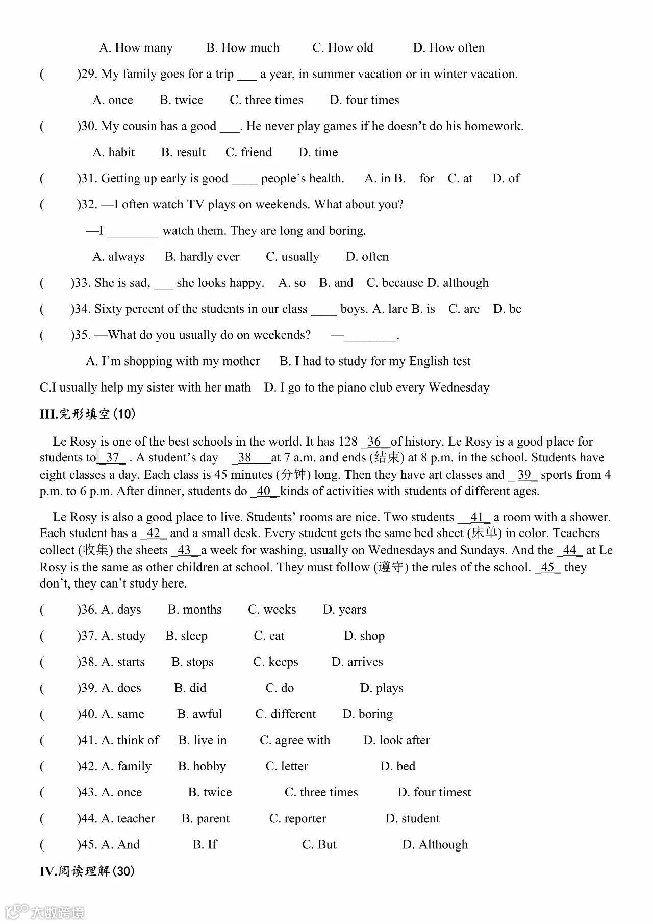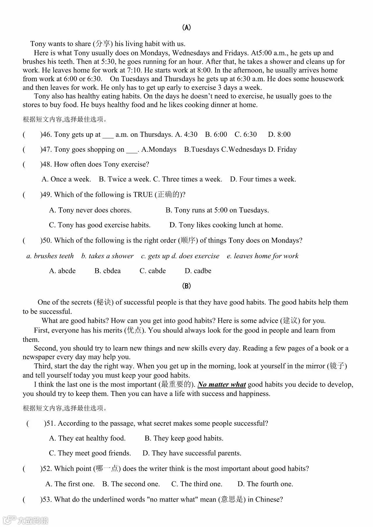 导读:后台回复1007可下载打印完整版(含答案和解析)