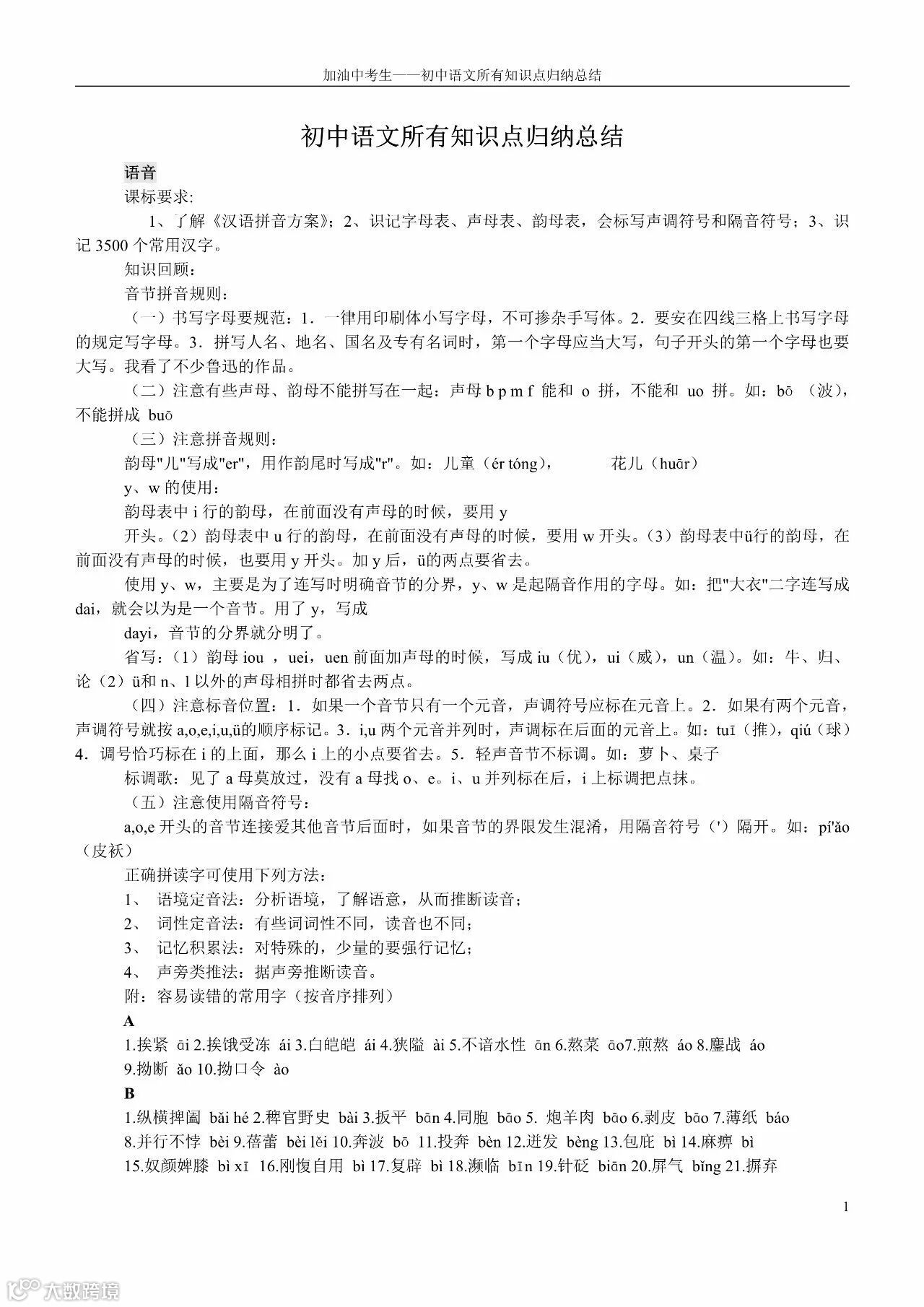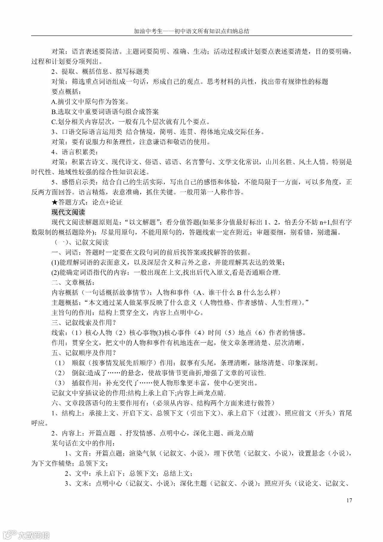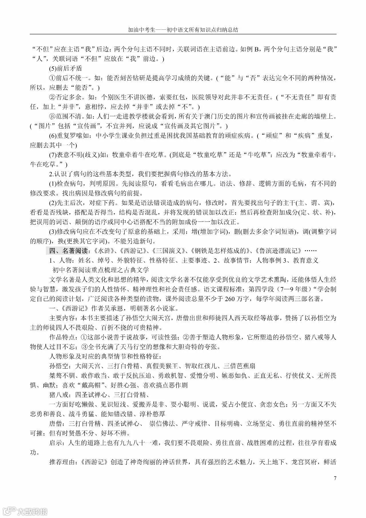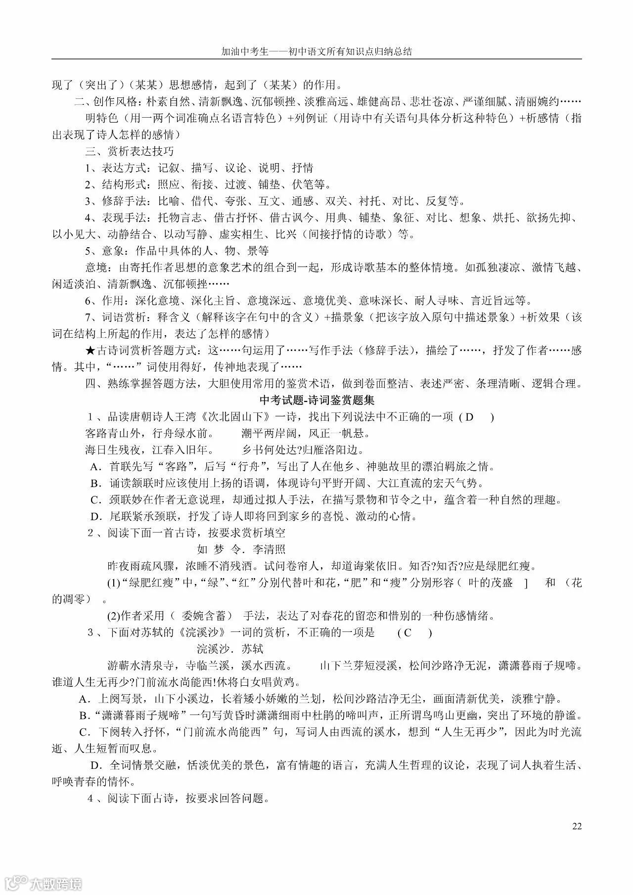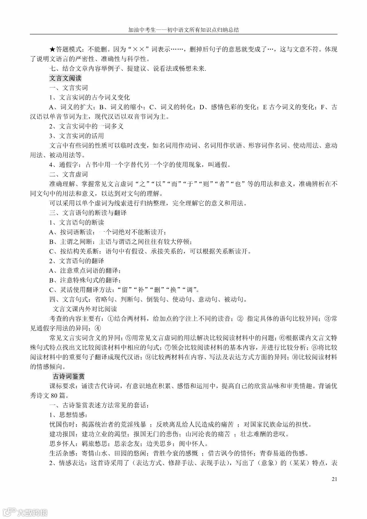 初中语文所有知识点归纳总结(老师都收藏了)