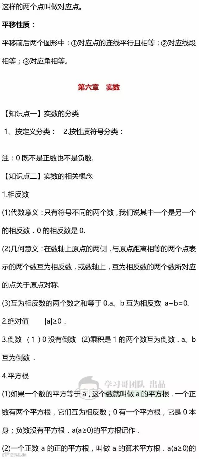 七年级数学(下)重点知识预习清单! 稳赢新学期(可下载打印版)