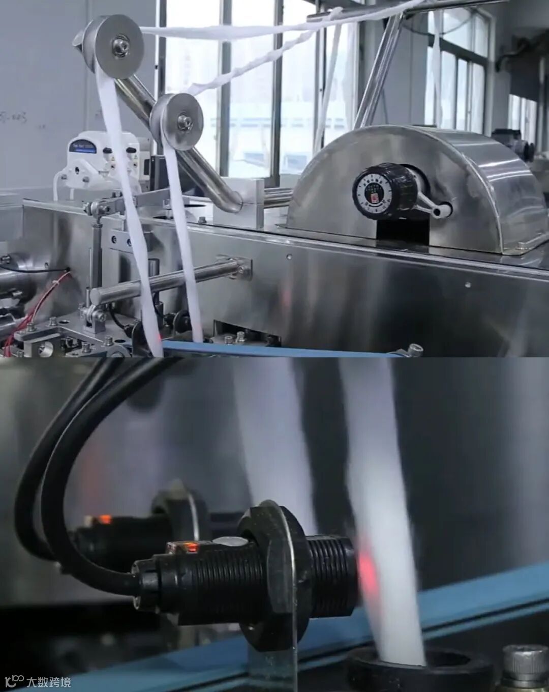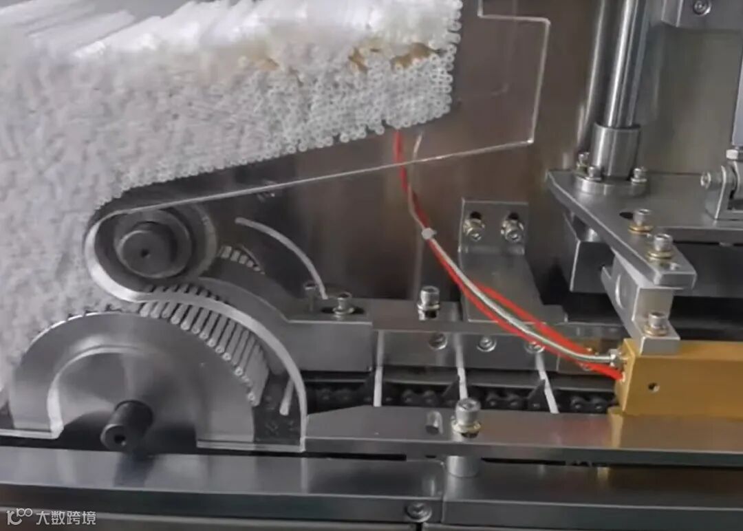 棉签棒准备:在处理棉花的同时,另一台机器开始对棉签棒进行排列,并将其依次送入棉签制造机入口。