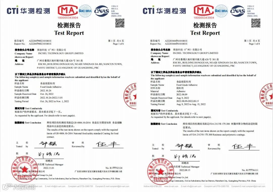 英创棉签胶符合国内外食品接触材料要求:符合中国GB4806 & GB9685及美国FDA 21CFR 175.300等的标准要求。