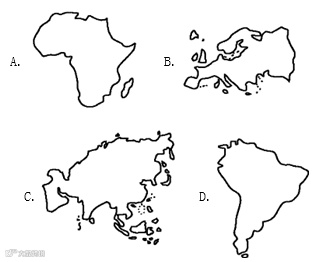 读下面四个大洲的轮廓图,回答下题。