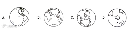 8.下面四幅图分别是东西南北四个半球,其中属于北半球的是( )