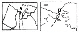 读下图,经线A以东是大洋,以西为陆地;B以东为北美洲,以西为大洋。回答下列各题。