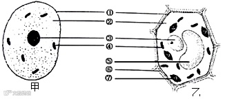 (1)图中______是植物细胞,对比甲、乙两图可以看出,植物细胞和动物细胞共有的结构是______(填写图中序号)。
