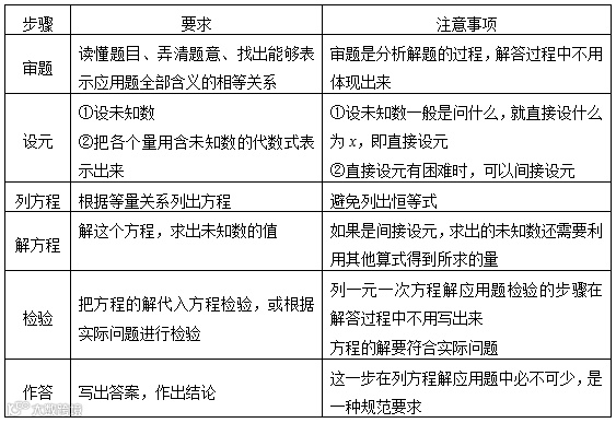 (3)设未知数时,要标明单位,在列方程时,如果题中数据的单位不统一,必须把单位换算成统一单位,尤其是行程问题里需要注意这个问题。