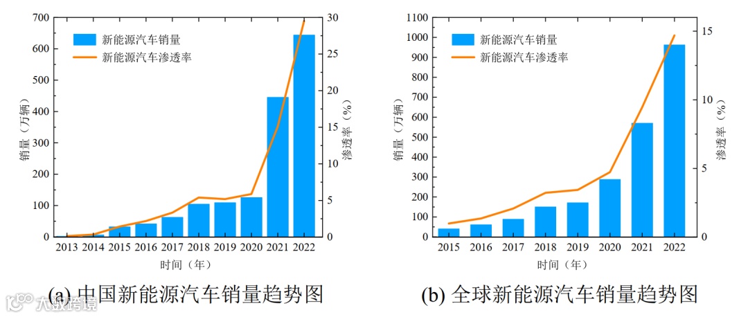 新能源汽车作为智能网联汽车的重要载体,近些年在我国政府补贴政策的支持下发展迅速,同时为了实现能源消耗结构的转型,大力发展新能源汽车也是必经之路,近年来国内外新能源汽车的销量和渗透率逐年增加。