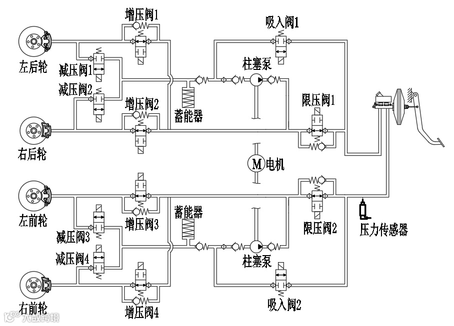 根据上层ADAS功能(AEB、ACC、APA等)的需求,ESC能够提供执行层的支持功能,根据上层控制指令以及车辆实际状态,ESC对发动机扭矩和液压控制单元的压力进行协调控制,保证执行层对压力和扭矩控制的精确性、稳定性和安全性。