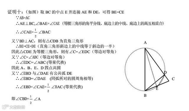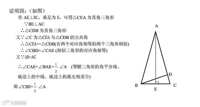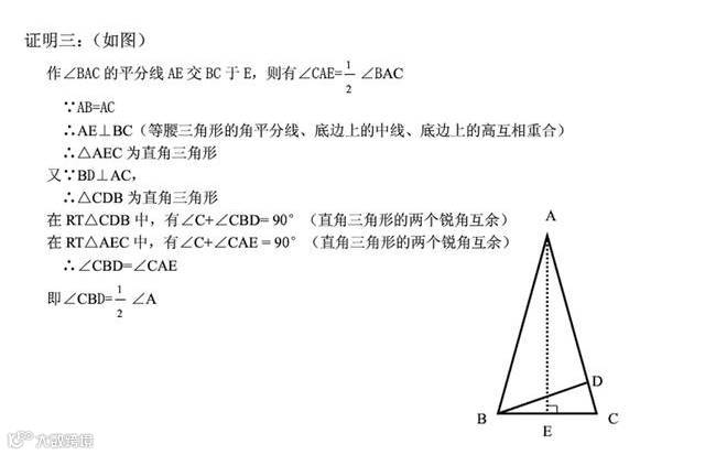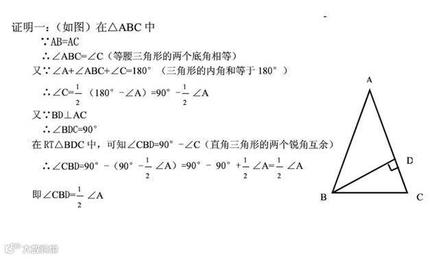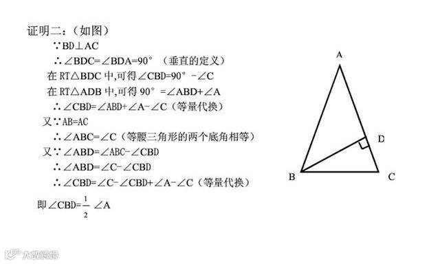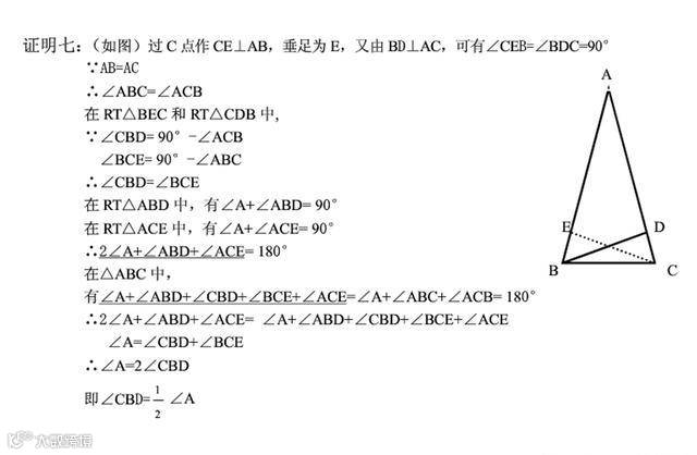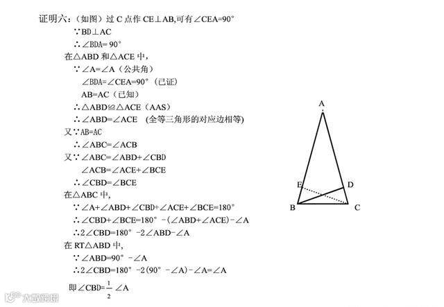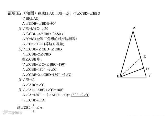 已知在△ABC中,AB=AC,BD是AC边上的高,求证: ∠CBD=1/2∠A