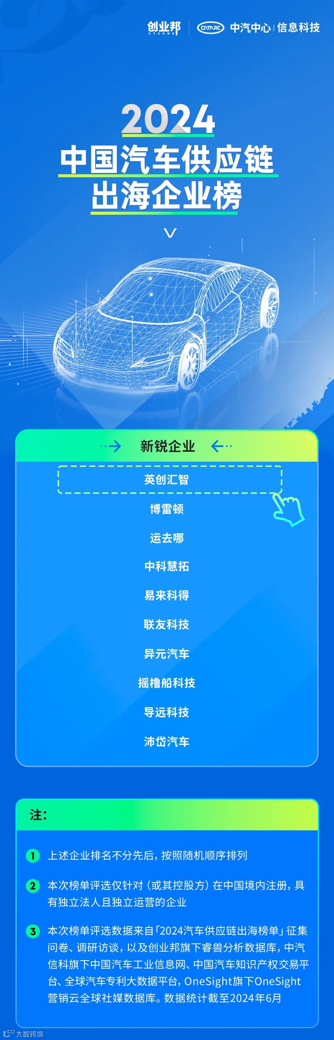 此次荣获“创业邦&中汽信科2024中国汽车供应链出海企业榜”殊荣,不仅是对英创汇智技术实力和市场表现的充分认可,更是对其在国际化道路上坚定前行的巨大鼓舞。同时,这一荣誉也将激励更多中国汽车供应链企业加快“出海”步伐,共同书写中国汽车供应链在全球市场上的崭新篇章。