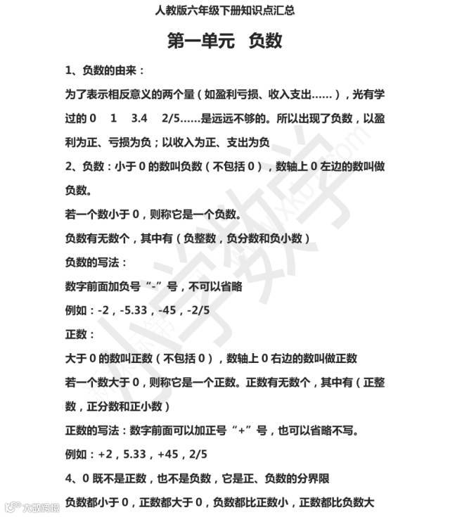 导读:六年级下册知识点汇总