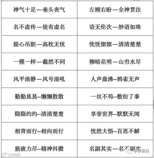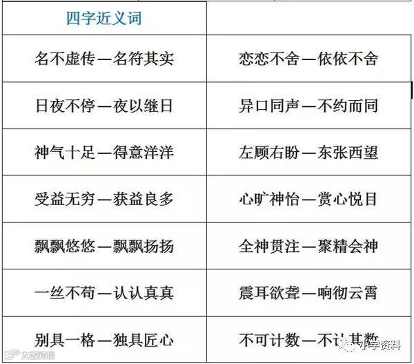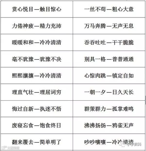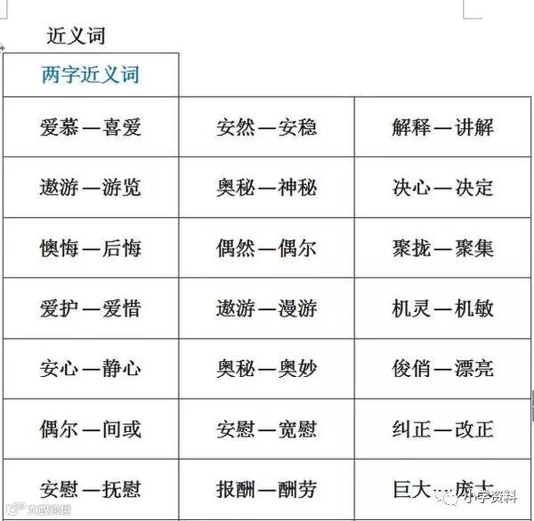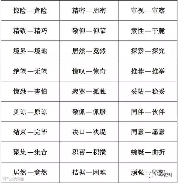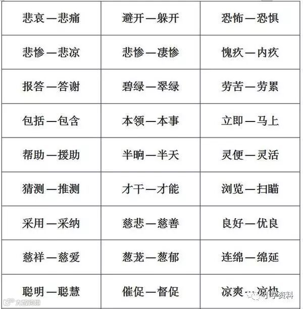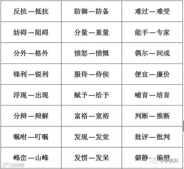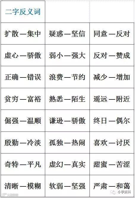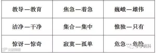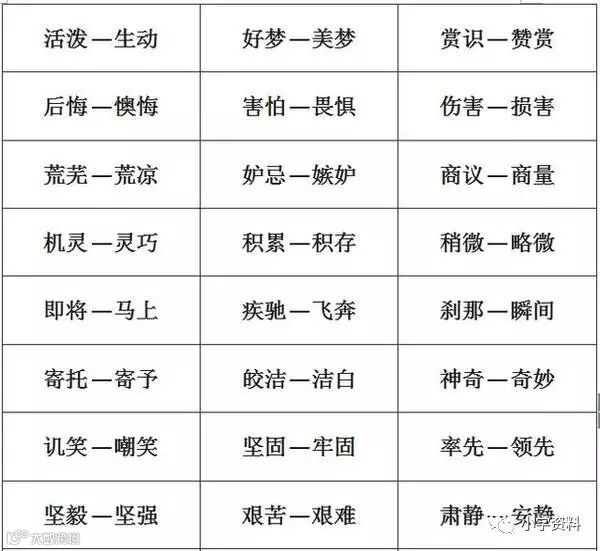 今天老师针对这类情况,总结了小学1-6年级的单字、两字、四字近义词和反义词,对孩子掌握这一知识点会有很大的帮助。