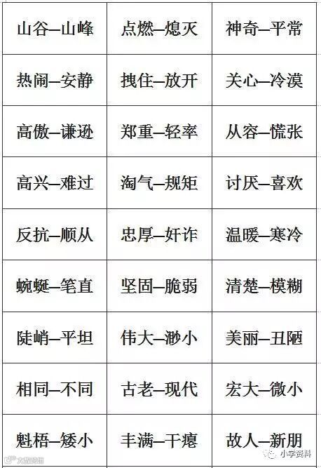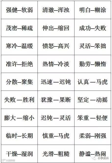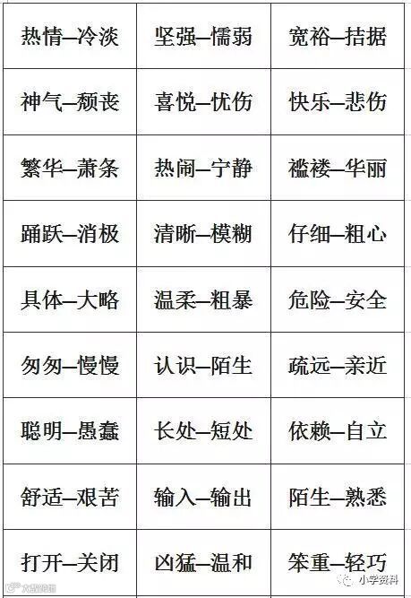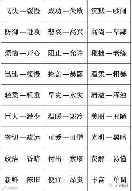 小学1-6年级:单字+双字+四字近义词和反义词大全