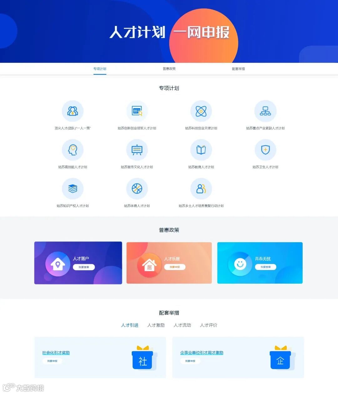 “苏州人才总入口”门户网站整合22项人才计划申报政策信息。其中,专项计划11项,普惠政策3项,配套举措8项。通过统一规划账号体系,标准化编写服务指南,统一建设人才乐居工程、姑苏重点产业紧缺人才计划、优秀人才贡献奖励、高端人才奖励计划等8项人才政策申报及审批模块,为注册企业“一网申报”人才政策提供了便利。