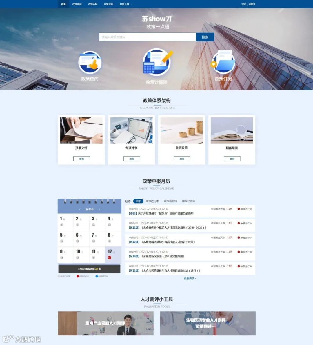 网站“苏show才”人才政策计算器系统梳理苏州市、县两级出台的142条人才政策,利用大数据和智能化技术,对人才政策要素进行精细化拆解,形成一整套有逻辑、有层次、分好类的人才政策体系,更方便查阅。“苏show才”可根据人才录入的基本信息,在几秒内生成最适合人才的政策智能匹配分析报告,形成推荐政策清单,并打通政策查询和申报通道,企业和人才还可通过“政策申报月历”,实时掌握最新申报政策,享受政策查询、匹配、推送、申报全链条服务。“苏show才”人才政策计算器上线以来,已有82万余人才使用。