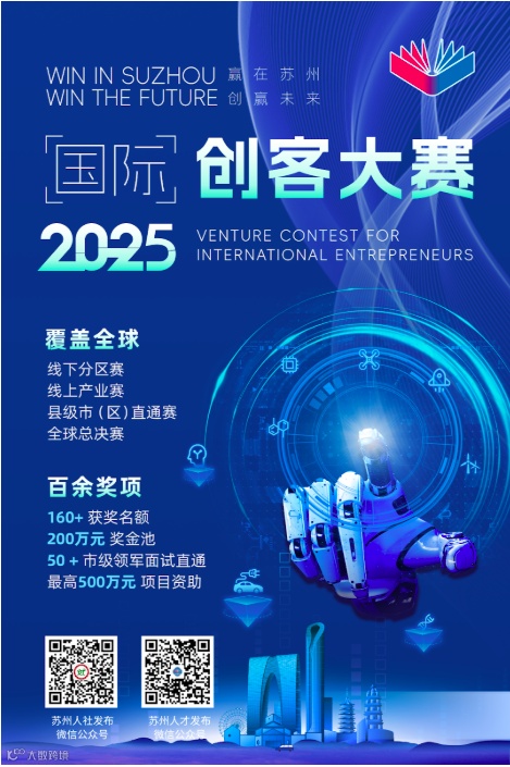 2025年“赢在苏州·创赢未来"全球国际创客大赛是由: 苏州国际精英创业周落户企业联盟主办,旨在为海外高层次人才打造高端创新创业平台。