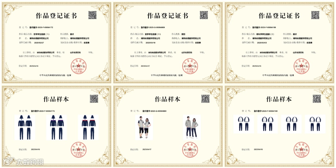 北辰中学、辰光中学、潍坊中学、广文中学等校服系尚德服饰设计作品,尚德已为上述校服申请版权登记,其设计图纸、色彩搭配受法律保护。对于仿冒产品,我公司将保留采取一切法律手段,维护校方、学生及自身合法权益。
