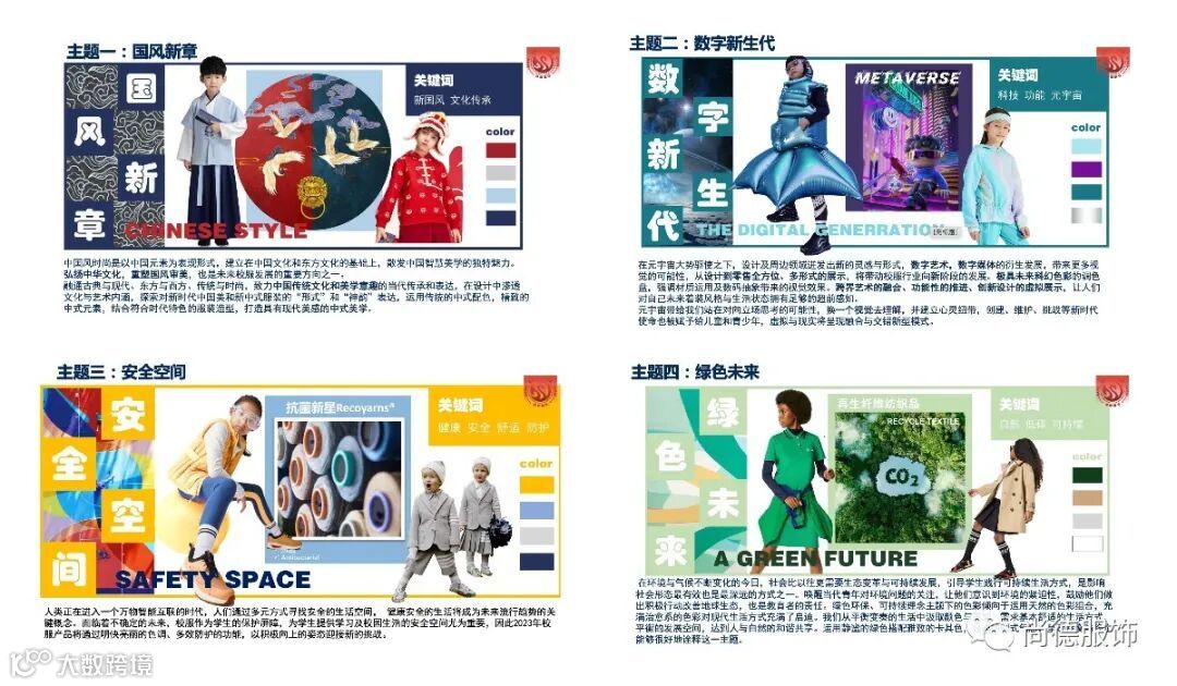 在演讲中,尚德服饰围绕健康舒适、科技赋能、绿色时尚,文化传承这四方面,提出了“安全空间”、“数字新生代”、“绿色未来”和“国风新章”四大主题新趋向,展示了其对未来校服设计的独特见解。