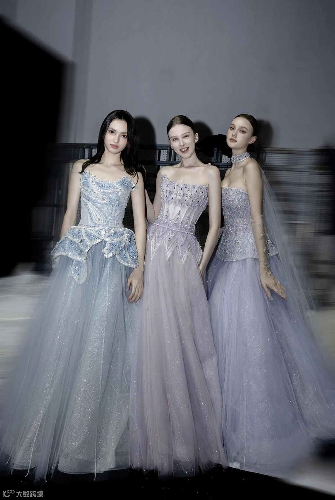 系列甄选土耳其面料、缎面与欧根纱为主料。色彩以蓝、紫、灰为主,融合天空深邃、梦幻浪漫与大地沉稳。
