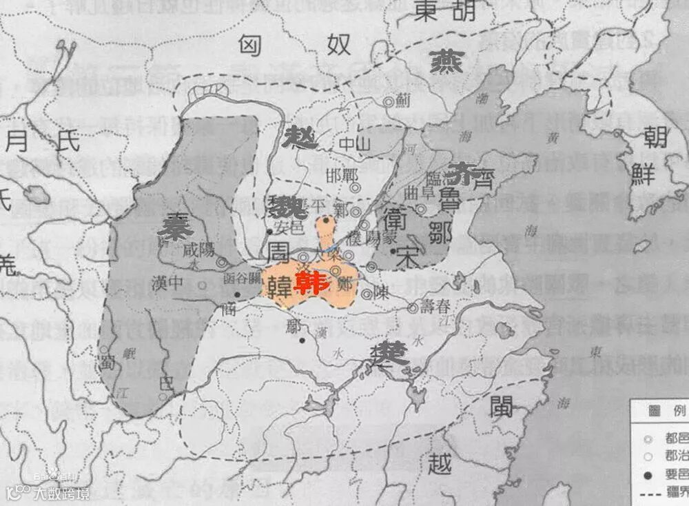 在“三家分晋”成为独立诸侯后的公元前375年,韩哀侯灭掉了旁边的郑国。要知道,郑国可不是什么不知名的小国,春秋时期,郑国是最先强起来的诸侯,甚至被称为“春秋五霸”之外的“小霸”。韩国灭掉郑国后,干脆把国都迁到郑地,并改名新郑。