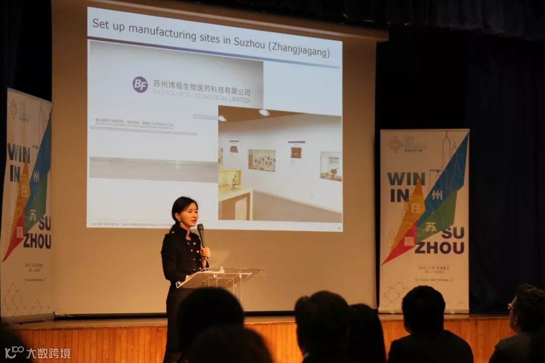 在苏州城市推广介绍后,苏州市创业代表,苏州博福生物医药科技有限公司创始人,剑桥大学博士颜菁女士结合自身创业经历,和与会的高层次人才分享了苏州市在海外人才创业的各个环节给与的支持与帮助。