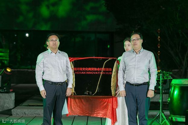 英国河南文化商贸协会王雷会长和航美智慧城许志辉总经理共同揭牌