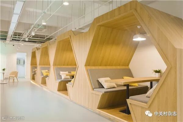 在车厢卡座的旁边就是共享茶水间,直饮水、微波炉、冰箱、消毒柜一应俱全。站在用户的使用场景上考虑,空间还贴心地为创业者布置了“共享文具区”,免费为创业者提供应急需要的办公文具。